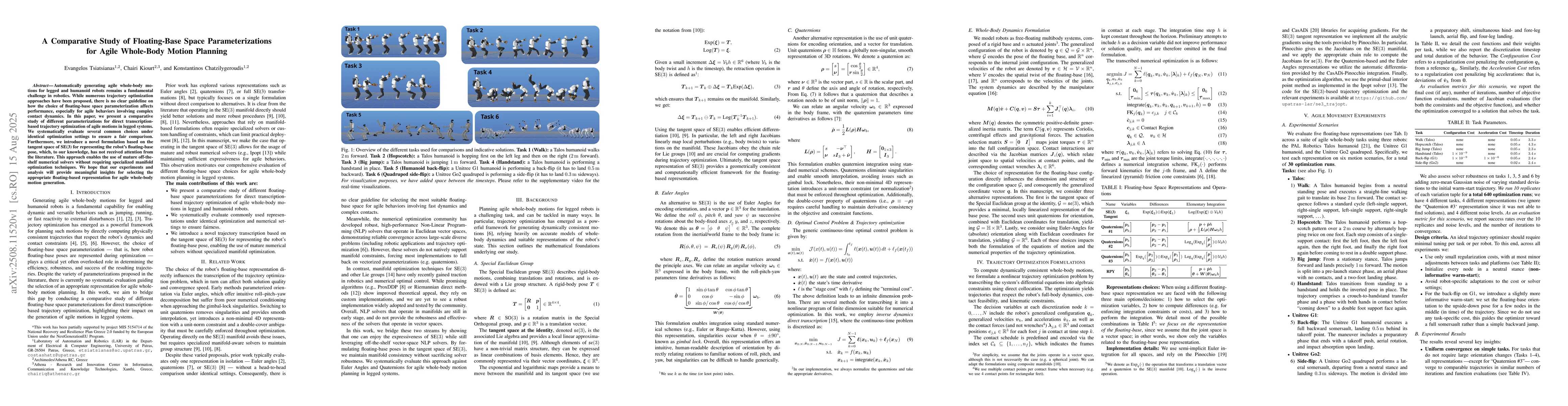 Automatically generating agile whole-body motions for legged and humanoid robots remains a fundamental challenge in robotics. While numerous trajectory optimization approaches have been proposed, there is no clear guideline on how the choice of floating-base space parameterization affects performance, especially for agile behaviors involving complex contact dynamics. In this paper, we present a comparative study of different parameterizations for direct transcription-based trajectory optimization of agile motions in legged systems. We systematically evaluate several common choices under identical optimization settings to ensure a fair comparison. Furthermore, we introduce a novel formulation based on the tangent space of SE(3) for representing the robot's floating-base pose, which, to our knowledge, has not received attention from the literature. This approach enables the use of mature off-the-shelf numerical solvers without requiring specialized manifold optimization techniques. We hope that our experiments and analysis will provide meaningful insights for selecting the appropriate floating-based representation for agile whole-body motion generation.