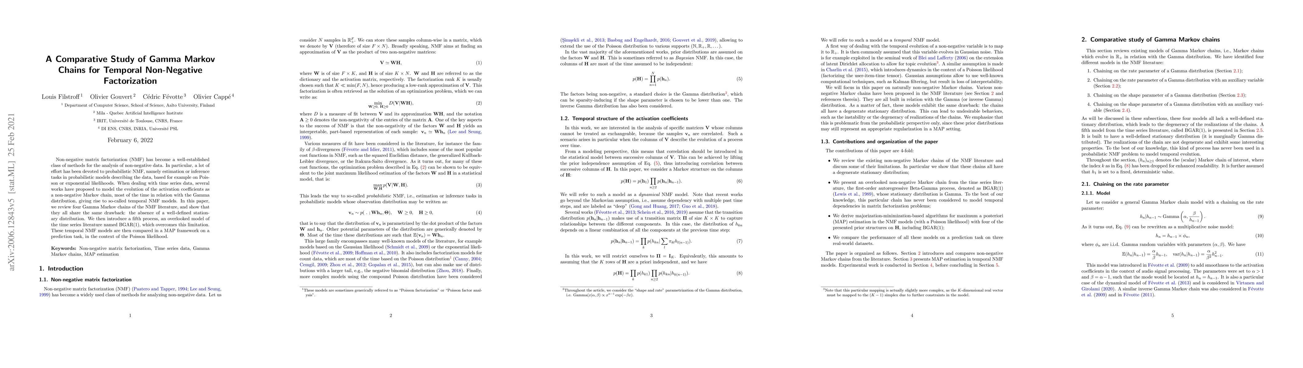 This paper reviews four Gamma Markov chains used in temporal non-negative matrix factorization (NMF) and identifies a common flaw: the lack of a well-defined stationary distribution. It introduces a fifth model, BGAR(1), which addresses this issue and compares all five models in a MAP framework for prediction tasks under a Poisson likelihood.