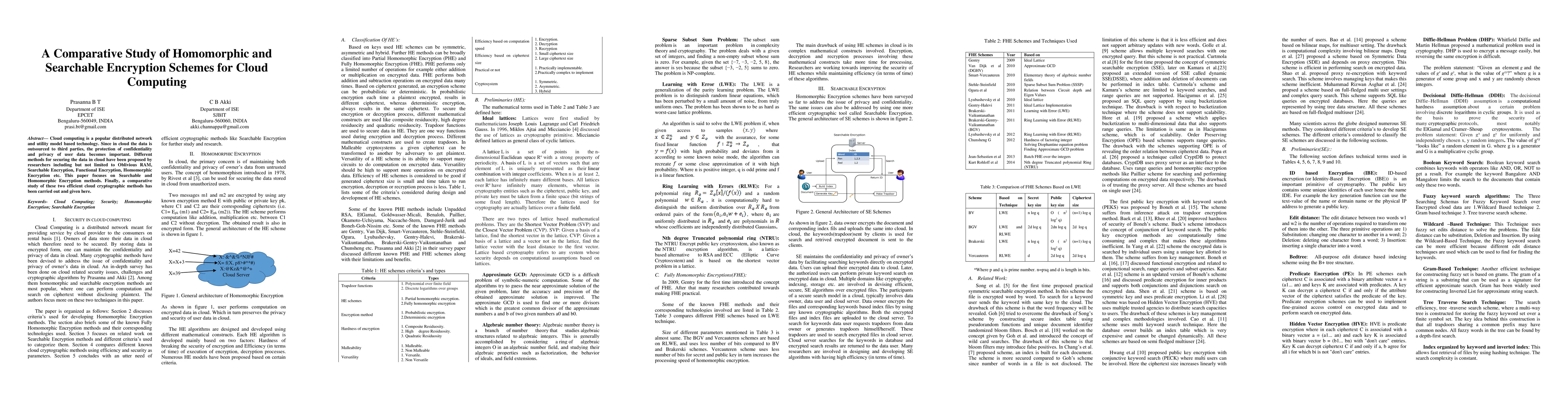 This paper compares Homomorphic Encryption and Searchable Encryption methods for securing data in cloud computing, evaluating their efficiency and effectiveness in protecting user privacy and confidentiality. The study highlights the strengths and limitations of each approach.