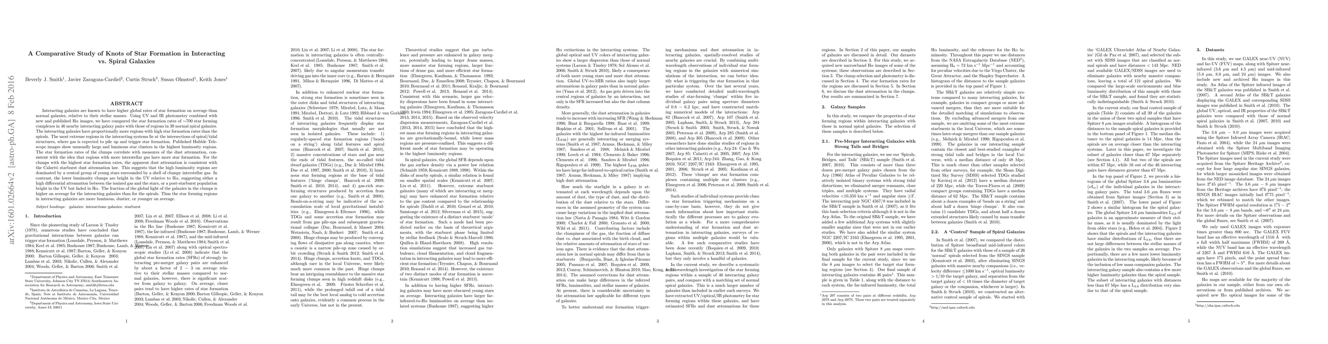 This study compares star formation rates in ~700 complexes in 46 interacting galaxies to those in 39 normal spiral galaxies, finding that interacting galaxies have more high-rate star formation regions, especially at intersections of spiral/tidal structures. The high luminosity regions in interacting galaxies are dominated by young stars surrounded by gas, while lower luminosity regions may indicate differential dust attenuation or post-starburst populations.