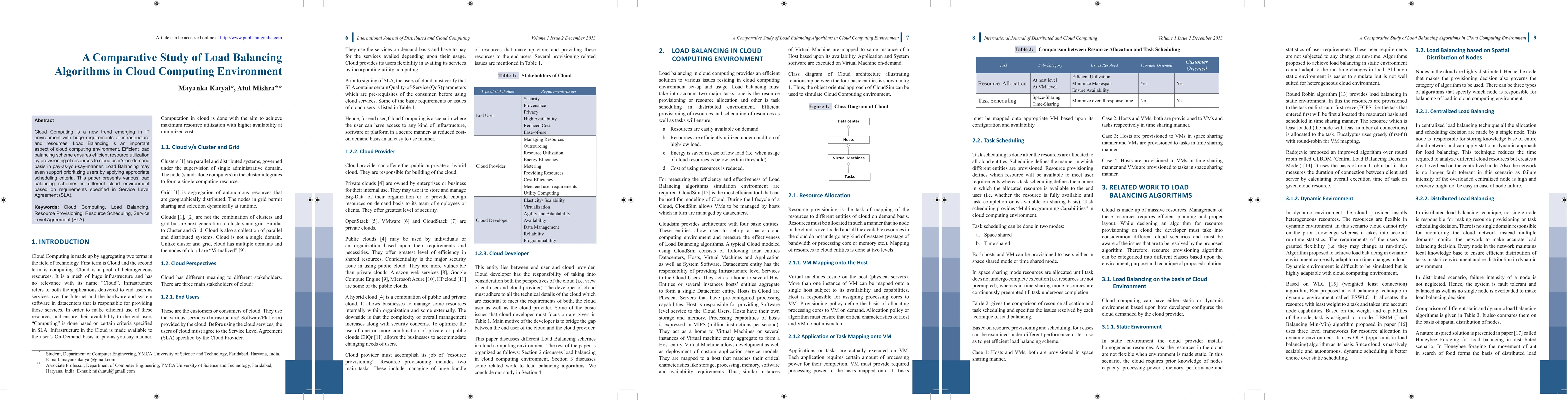 This paper compares various load balancing algorithms in cloud computing environments, focusing on their efficiency in resource utilization and compliance with Service Level Agreements (SLAs). It evaluates how different schemes prioritize users and allocate resources on-demand.