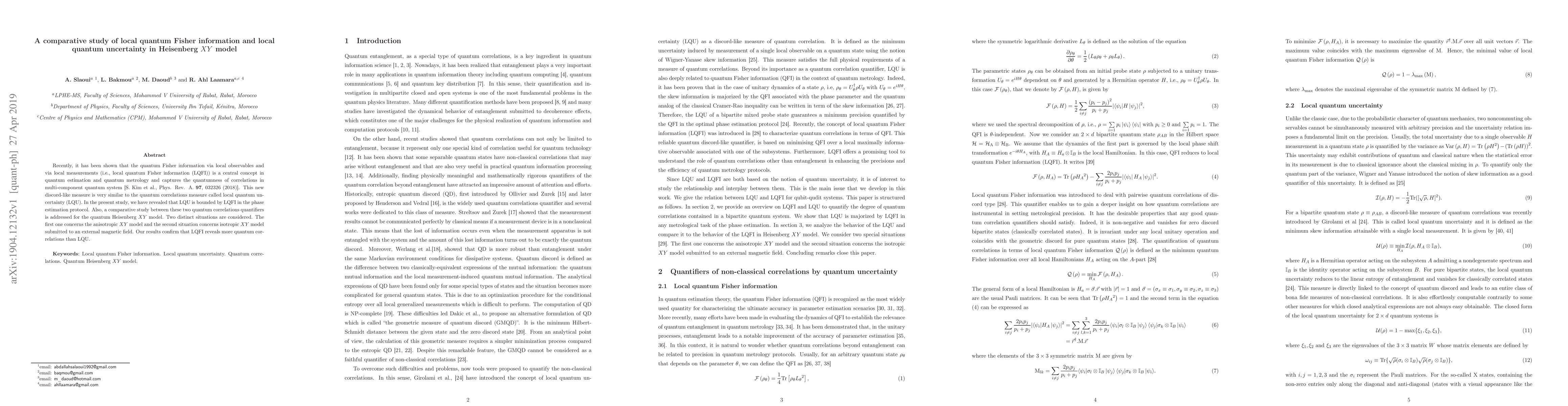 This study compares local quantum Fisher information (LQFI) and local quantum uncertainty (LQU) in the Heisenberg XY model, showing that LQFI captures more quantum correlations than LQU. The analysis considers both anisotropic and isotropic XY models under external magnetic fields.