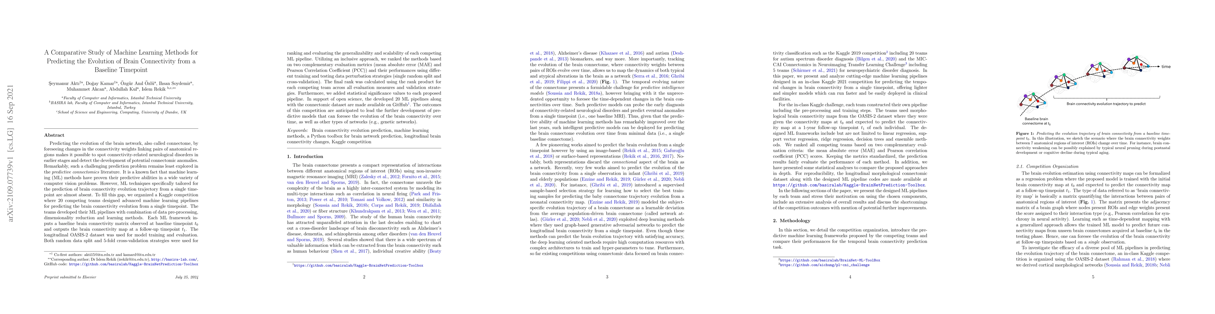 This paper reports on a Kaggle competition where 20 teams developed machine learning models to predict the evolution of brain connectivity from a single timepoint. The models were evaluated based on mean absolute error and Pearson Correlation Coefficient, with rankings determined by a rank product method across various validation strategies. The competition aims to advance predictive connectomics and the findings are made available for open science.