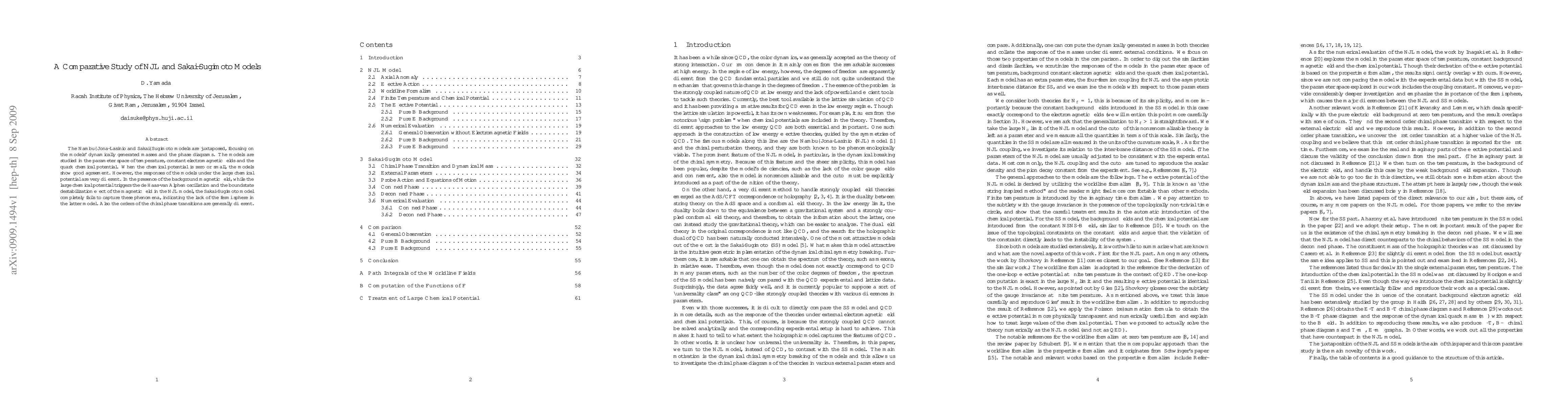 Two models, NJL and Sakai-Sugimoto, show good agreement at low chemical potentials but differ significantly at high chemical potentials, with the Sakai-Sugimoto model failing to capture key phenomena like de Haas-van Alphen oscillation.