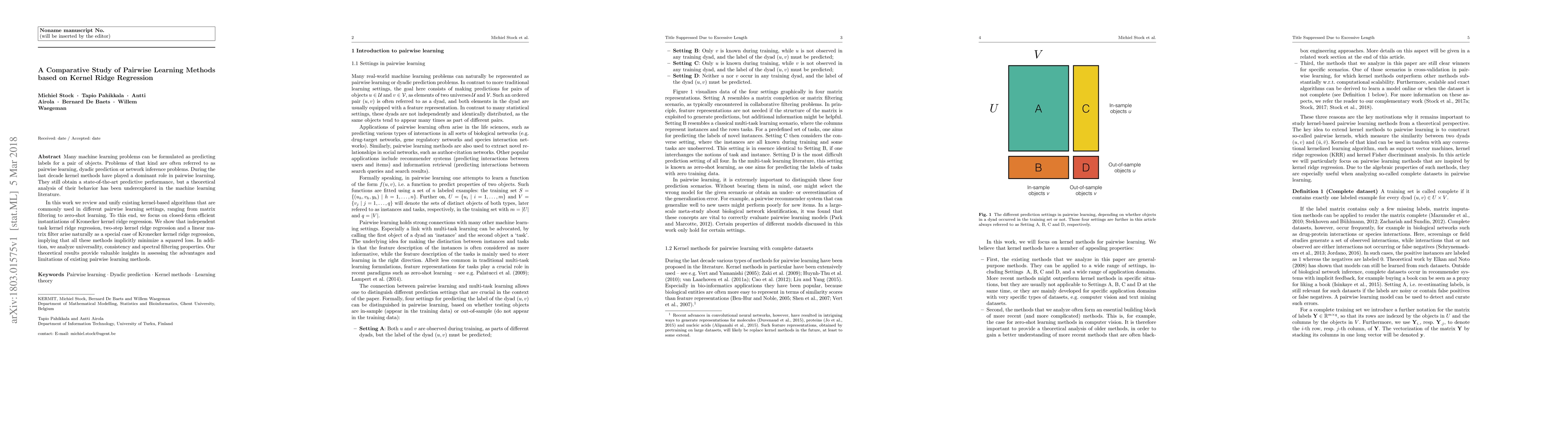 This paper reviews and unifies various kernel-based pairwise learning methods, demonstrating that they all stem from Kronecker kernel ridge regression. It analyzes their theoretical properties, providing insights into their advantages and limitations.