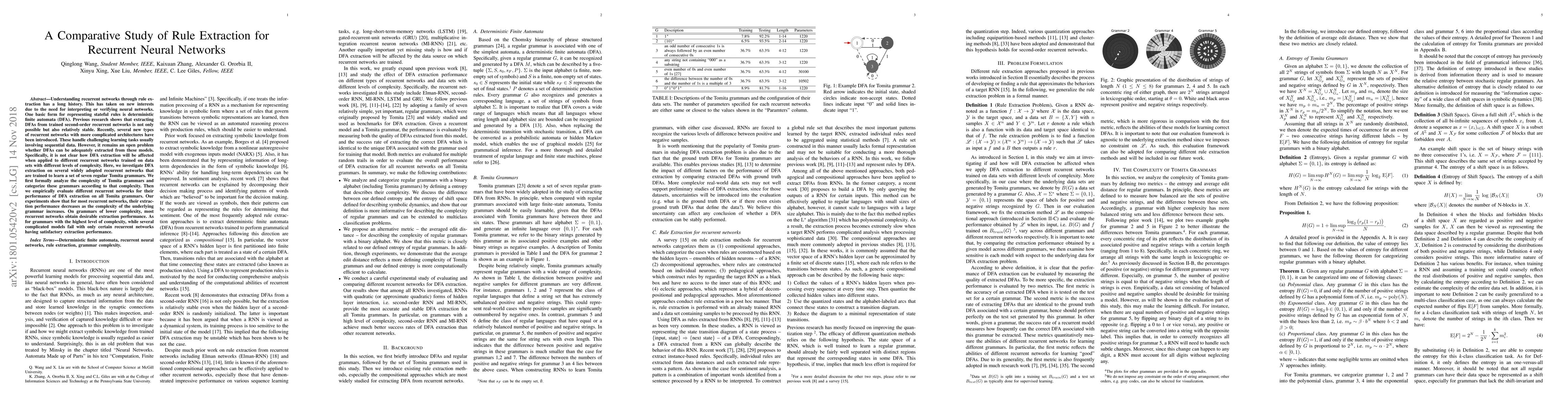 This paper investigates the extraction of deterministic finite automata (DFAs) from various recurrent neural networks trained on Tomita grammars of varying complexity. It finds that while DFA extraction is effective for simpler grammars, performance declines for more complex grammars, with only certain advanced models maintaining satisfactory extraction results.