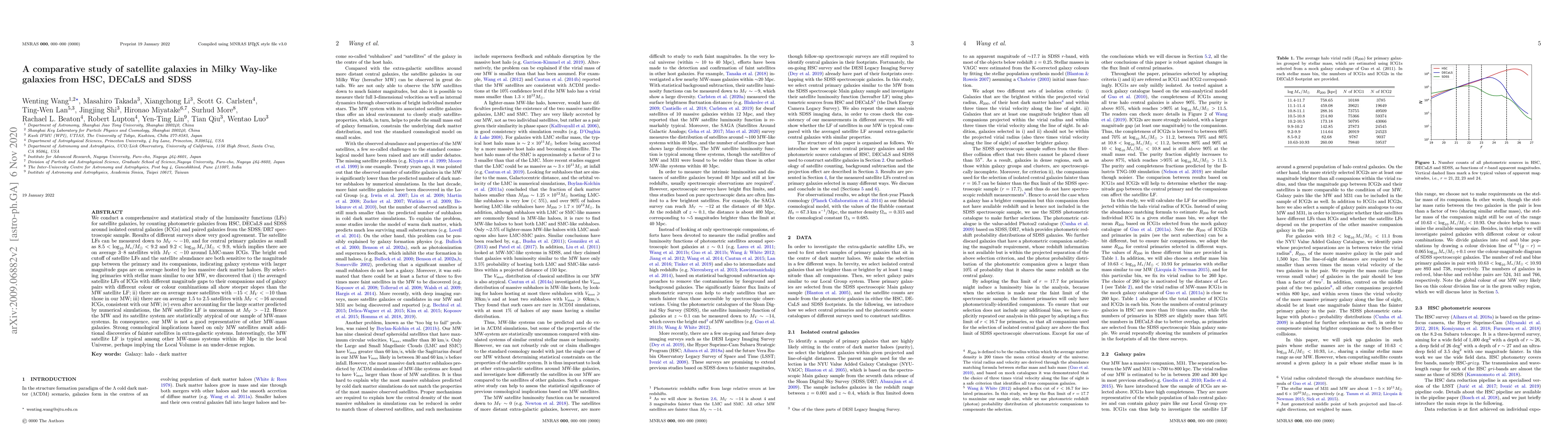 This study compares satellite galaxies in Milky Way-like galaxies using data from HSC, DECaLS, and SDSS, finding that the Milky Way's satellite luminosity function is atypical compared to other similar galaxies. The research highlights that the Milky Way hosts fewer satellites than expected, suggesting it may not be representative of other galaxies of its mass.
