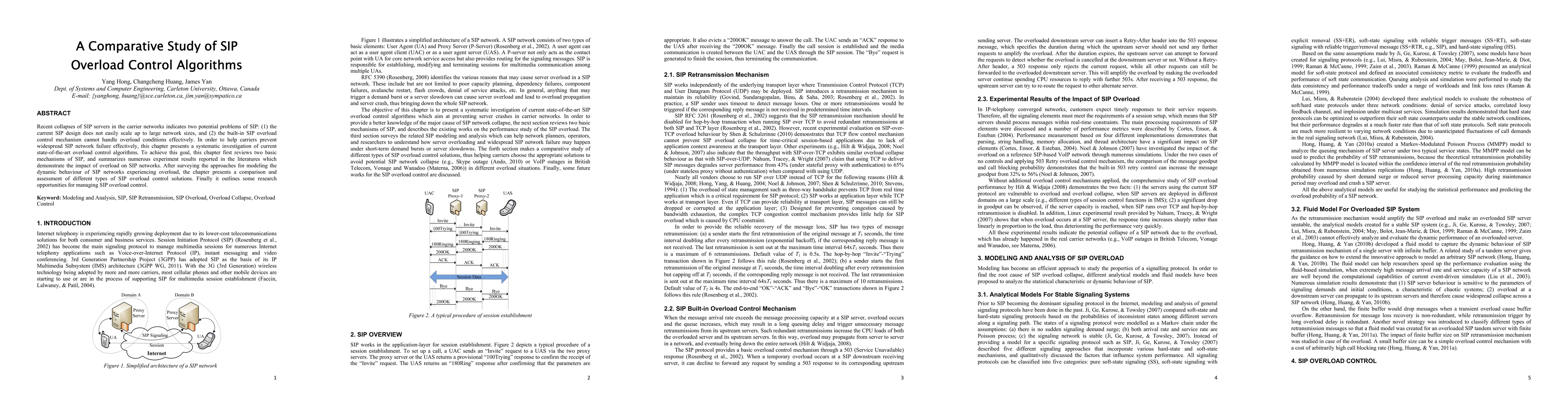 This paper investigates state-of-the-art SIP overload control algorithms to address the scalability issues and ineffective overload management in SIP networks, comparing various solutions and identifying research opportunities for better overload control.