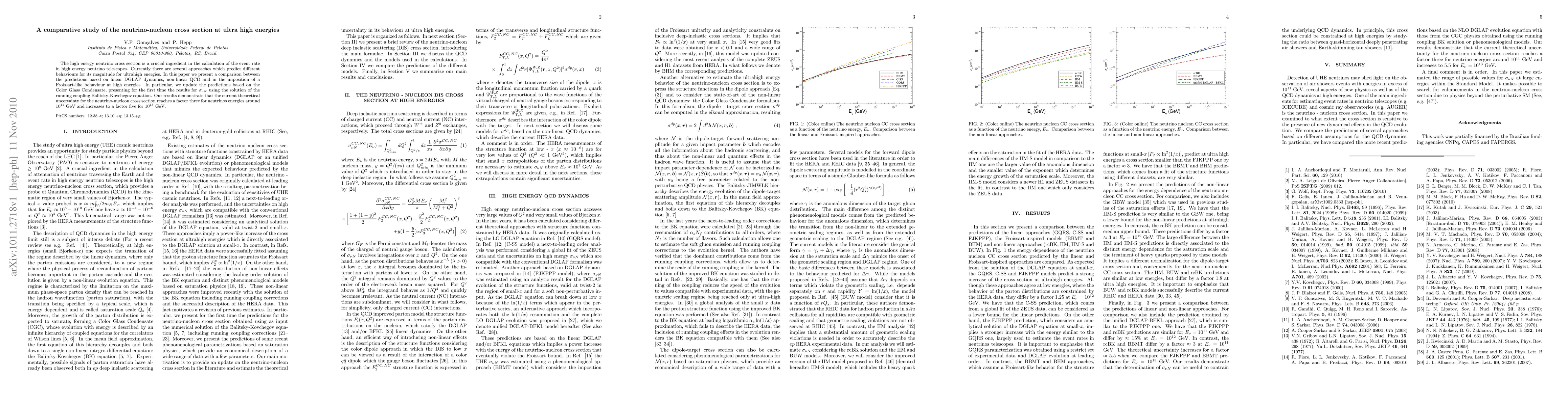 Researchers compared predictions for high-energy neutrino-nucleon cross sections using different approaches, finding large uncertainties of a factor three to five at energies around 10^11 GeV and 10^13 GeV.