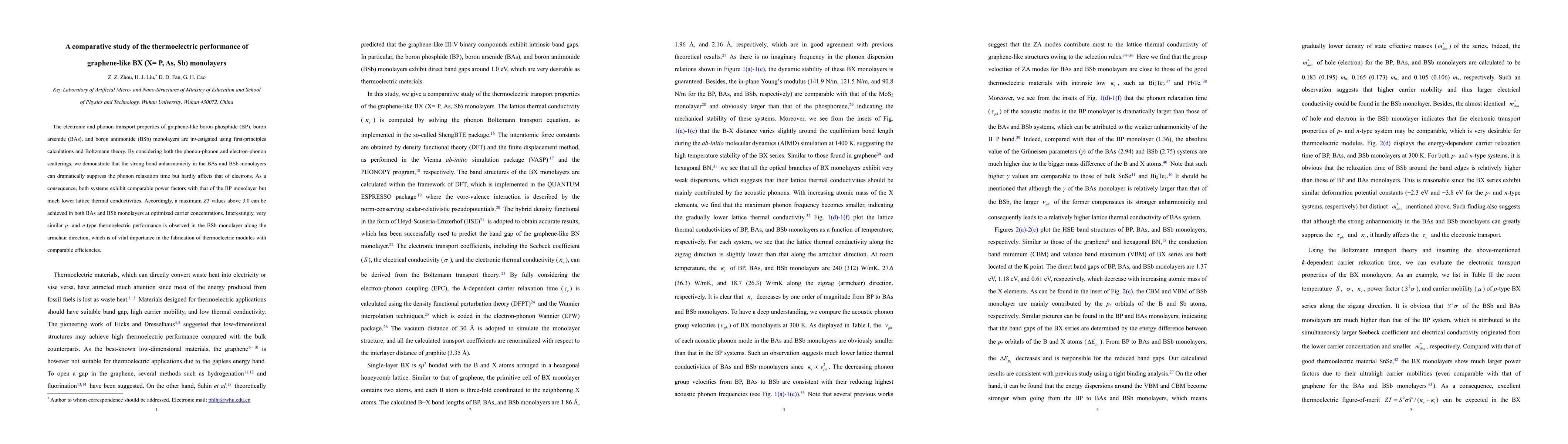 This study compares the thermoelectric performance of graphene-like boron phosphide, arsenide, and antimonide monolayers. It finds that boron arsenide and antimonide show lower lattice thermal conductivities and comparable power factors to boron phosphide, leading to high ZT values of over 3.0 and similar p- and n-type efficiencies, crucial for efficient thermoelectric modules.