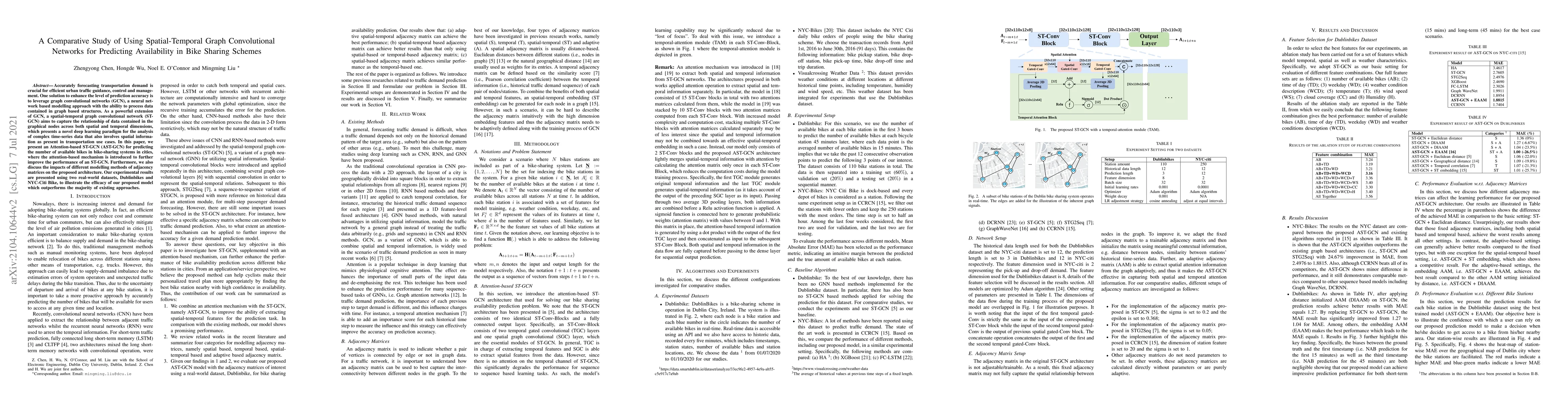 This paper proposes an Attention-based Spatial-Temporal Graph Convolutional Network (AST-GCN) to predict bike availability in bike-sharing systems, leveraging spatial and temporal data. Experimental results on Dublinbikes and NYC-Citi Bike datasets show that AST-GCN outperforms existing methods, highlighting the effectiveness of the attention mechanism and different adjacency matrix modelling approaches.