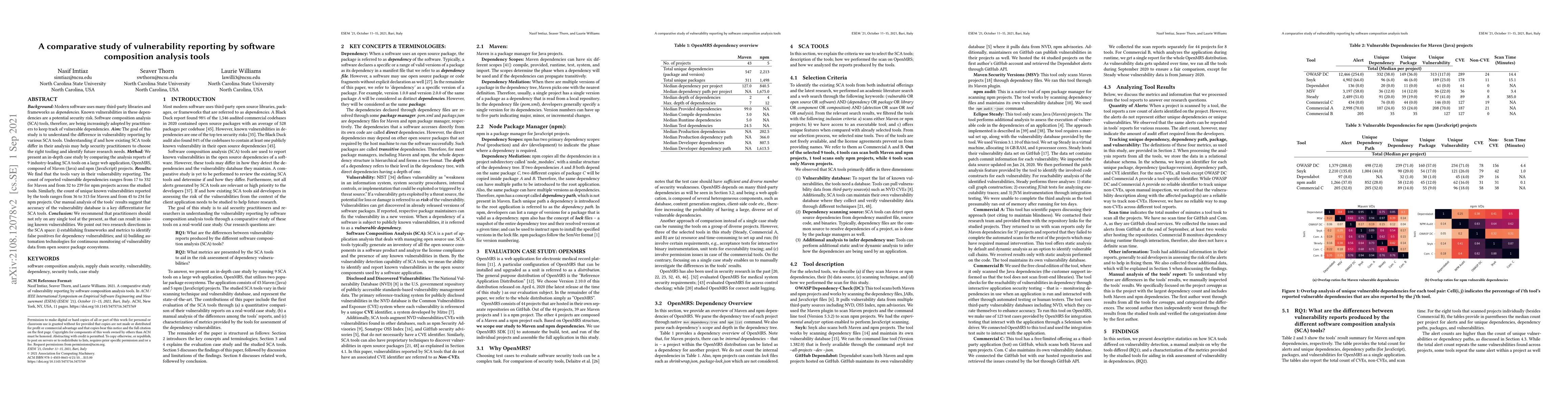 This study compares the vulnerability reporting by nine leading software composition analysis tools on a large web application, finding significant variation in the number of reported vulnerabilities. The results suggest that the accuracy of the tools' vulnerability databases is a key differentiator, and recommend practitioners use multiple tools to avoid missing vulnerabilities, while also highlighting the need for research on false positives and continuous monitoring automation.