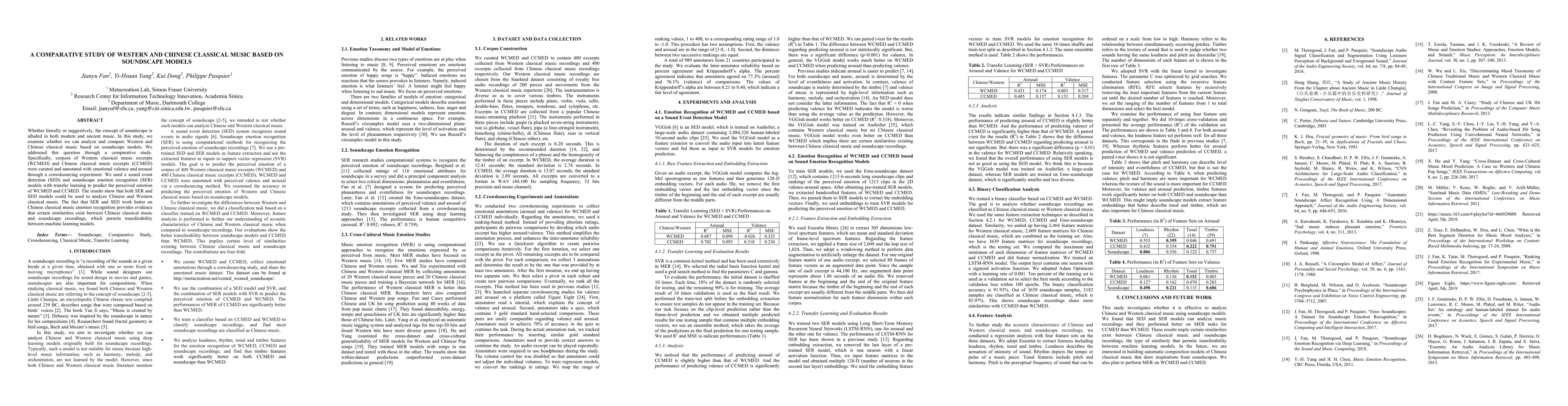 Whether literally or suggestively, the concept of soundscape is alluded in both modern and ancient music. In this study, we examine whether we can analyze and compare Western and Chinese classical music based on soundscape models. We addressed this question through a comparative study. Specifically, corpora of Western classical music excerpts (WCMED) and Chinese classical music excerpts (CCMED) were curated and annotated with emotional valence and arousal through a crowdsourcing experiment. We used a sound event detection (SED) and soundscape emotion recognition (SER) models with transfer learning to predict the perceived emotion of WCMED and CCMED. The results show that both SER and SED models could be used to analyze Chinese and Western classical music. The fact that SER and SED work better on Chinese classical music emotion recognition provides evidence that certain similarities exist between Chinese classical music and soundscape recordings, which permits transferability between machine learning models.