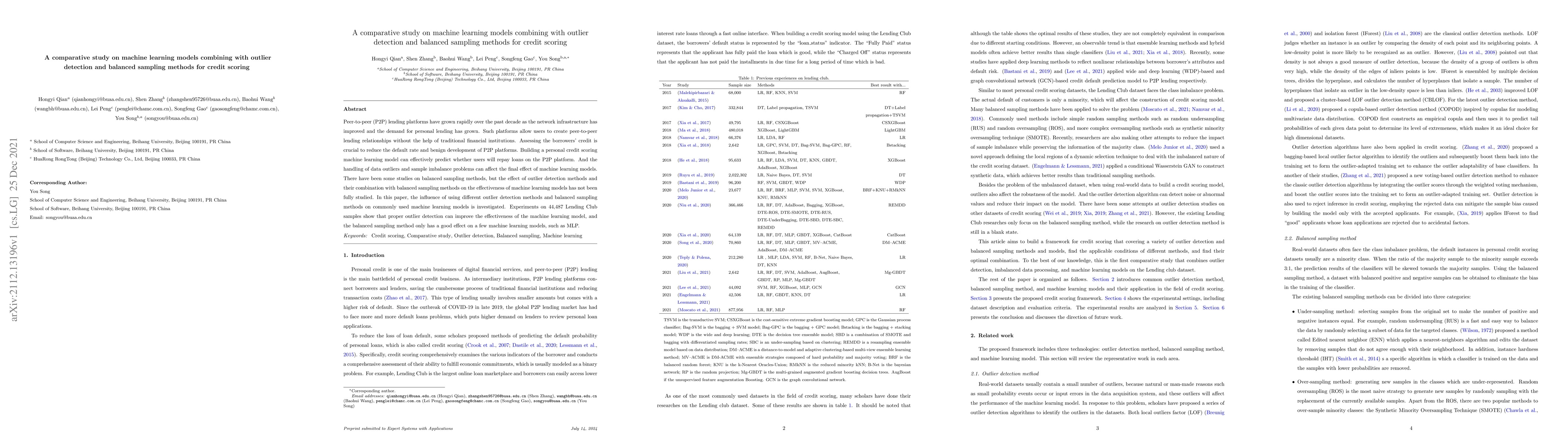 Peer-to-peer (P2P) lending platforms have grown rapidly over the past decade as the network infrastructure has improved and the demand for personal lending has grown. Such platforms allow users to create peer-to-peer lending relationships without the help of traditional financial institutions. Assessing the borrowers' credit is crucial to reduce the default rate and benign development of P2P platforms. Building a personal credit scoring machine learning model can effectively predict whether users will repay loans on the P2P platform. And the handling of data outliers and sample imbalance problems can affect the final effect of machine learning models. There have been some studies on balanced sampling methods, but the effect of outlier detection methods and their combination with balanced sampling methods on the effectiveness of machine learning models has not been fully studied. In this paper, the influence of using different outlier detection methods and balanced sampling methods on commonly used machine learning models is investigated. Experiments on 44,487 Lending Club samples show that proper outlier detection can improve the effectiveness of the machine learning model, and the balanced sampling method only has a good effect on a few machine learning models, such as MLP.