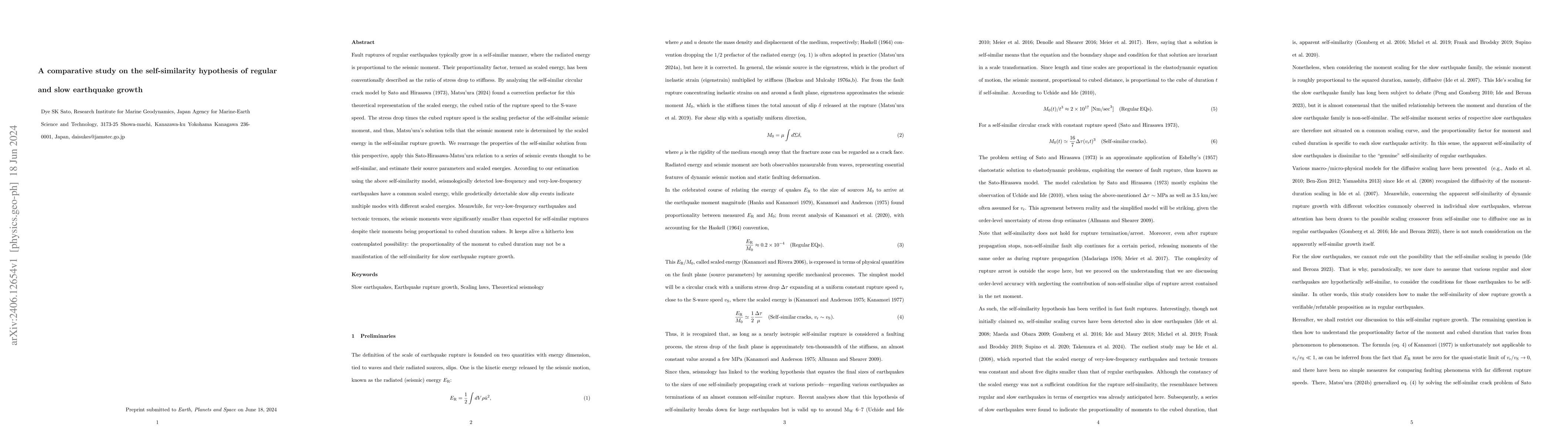 This study compares the self-similarity hypothesis in regular earthquakes with slow earthquakes, finding that while regular earthquakes follow a self-similar growth pattern, very-low-frequency earthquakes and tectonic tremors do not, suggesting alternative growth mechanisms for slow earthquakes.