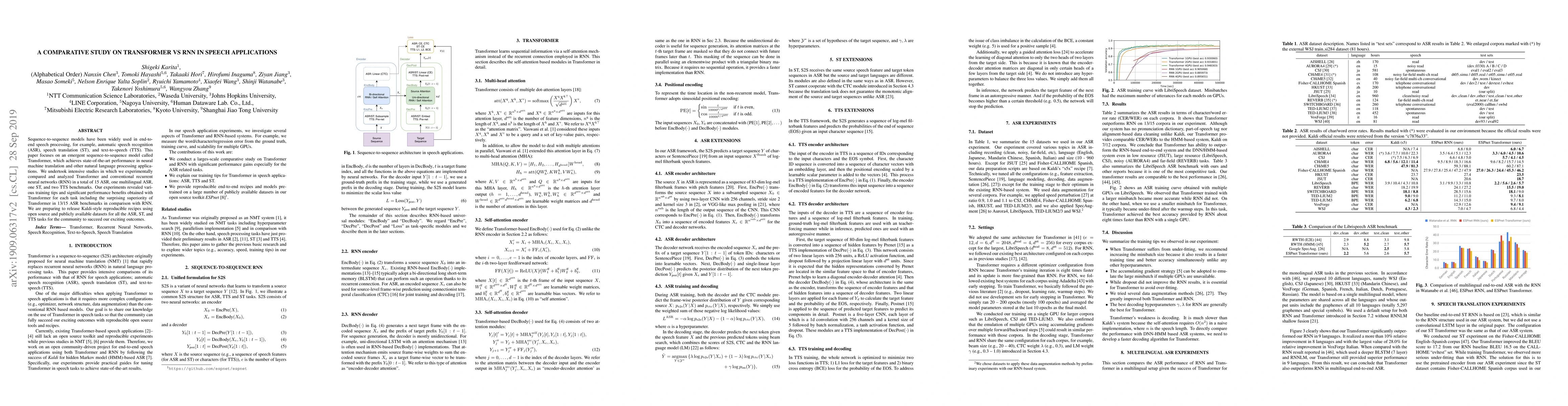This paper compares Transformer models to RNNs in speech applications like ASR, ST, and TTS, finding significant performance benefits for Transformer in 13 out of 15 benchmarks.
