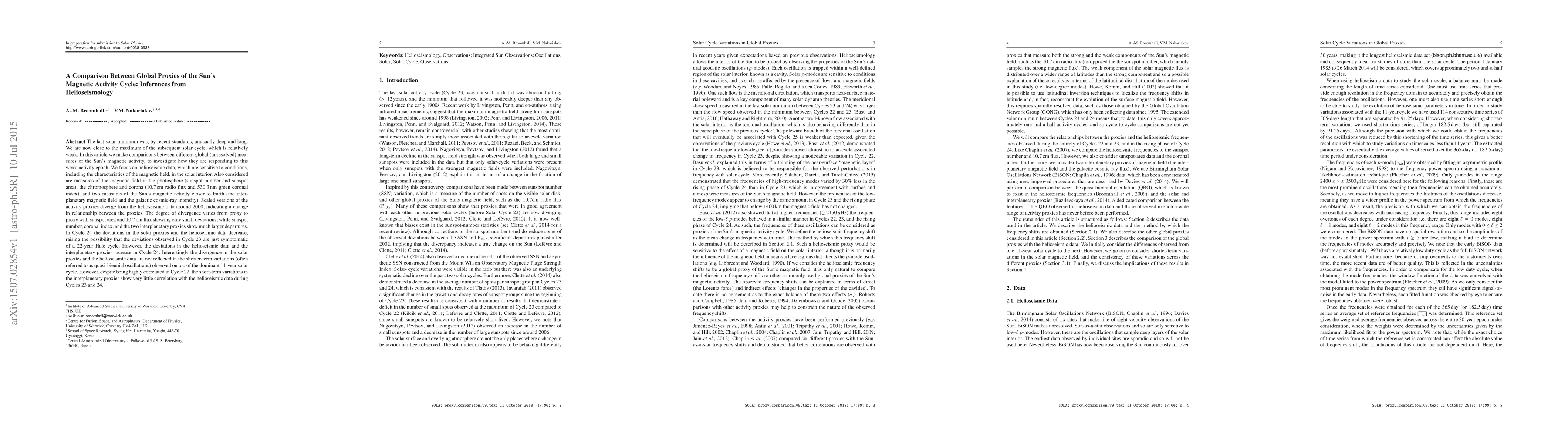 The last solar minimum was, by recent standards, unusually deep and long. We are now close to the maximum of the subsequent solar cycle, which is relatively weak. In this article we make comparisons between different global (unresolved) measures of the Sun's magnetic activity, to investigate how they are responding to this weak-activity epoch. We focus on helioseismic data, which are sensitive to conditions, including the characteristics of the magnetic field, in the solar interior. Also considered are measures of the magnetic field in the photosphere (sunspot number and sunspot area), the chromosphere and corona (10.7cm radio flux and 530.3nm green coronal index), and two measures of the Sun's magnetic activity closer to Earth (the interplanetary magnetic field and the galactic cosmic-ray intensity). Scaled versions of the activity proxies diverge from the helioseismic data around 2000, indicating a change in relationship between the proxies. The degree of divergence varies from proxy to proxy with sunspot area and 10.7cm flux showing only small deviations, while sunspot number, coronal index, and the two interplanetary proxies show much larger departures. In Cycle 24 the deviations in the solar proxies and the helioseismic data decrease, raising the possibility that the deviations observed in Cycle 23 are just symptomatic of a 22-year Hale cycle. However, the deviations in the helioseismic data and the interplanetary proxies increase in Cycle 24. Interestingly the divergence in the solar proxies and the helioseismic data are not reflected in the shorter-term variations (often referred to as quasi-biennial oscillations) observed on top of the dominant 11-year solar cycle. However, despite being highly correlated in Cycle 22, the short-term variations in the interplanetary proxies show very little correlation with the helioseismic data during Cycles 23 and 24.