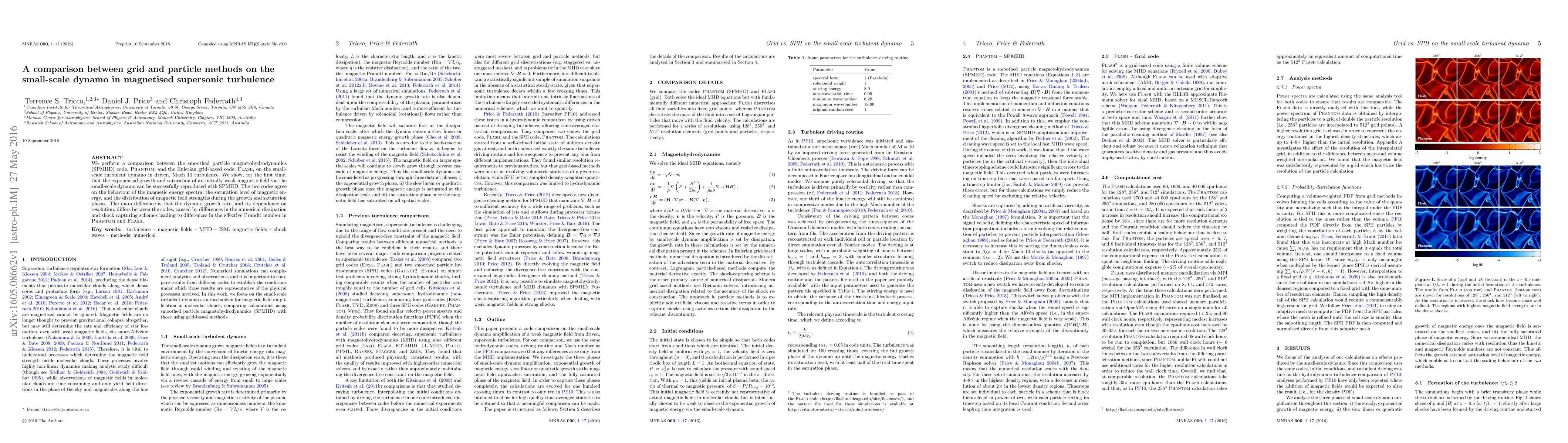 This study compares the performance of smoothed particle magnetohydrodynamics (SPMHD) and grid-based magnetohydrodynamics (MHD) codes in simulating the small-scale dynamo in magnetised supersonic turbulence. Both codes successfully reproduce the exponential growth and saturation of magnetic fields, but differ in dynamo growth rates due to variations in numerical dissipation and shock capturing methods.