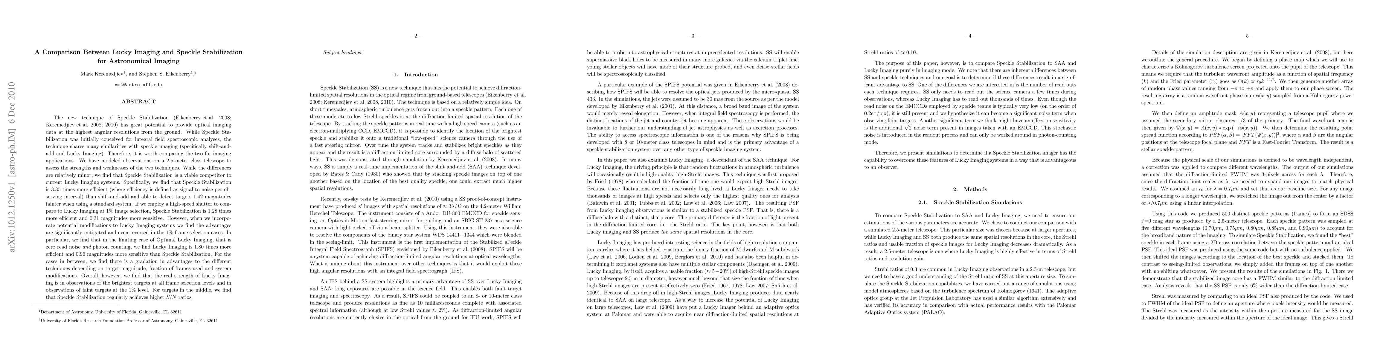 A simulation-based study comparing Speckle Stabilization (SS) with Lucky Imaging for high-resolution imaging in astronomy.