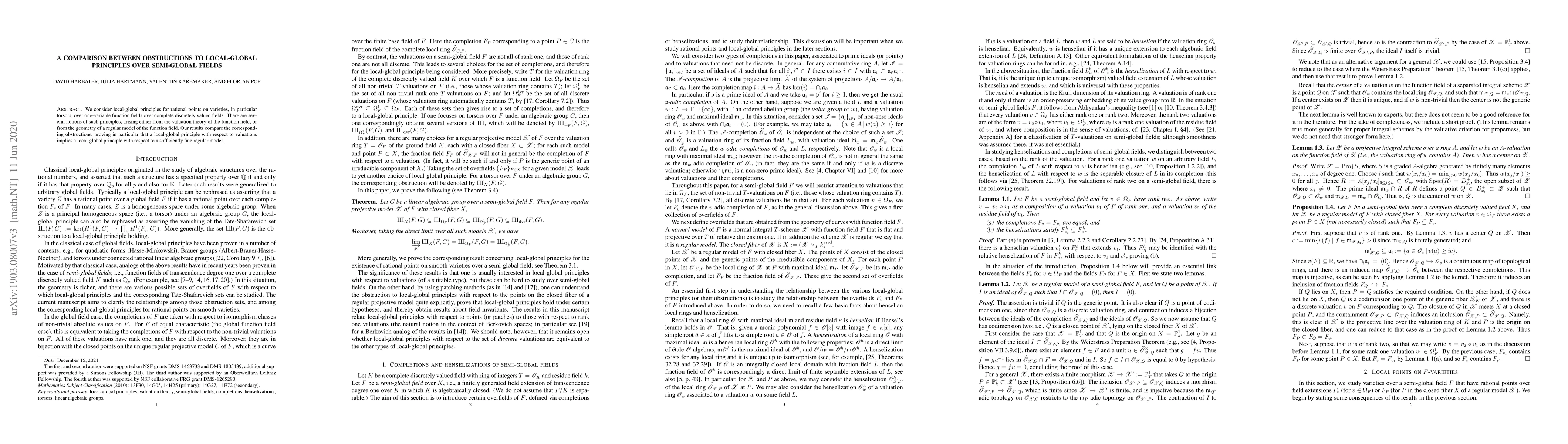 This paper compares obstructions to local-global principles for rational points on varieties over one-variable function fields over complete discretely valued fields. It demonstrates that local-global principles derived from valuation theory imply those from the geometry of regular models.