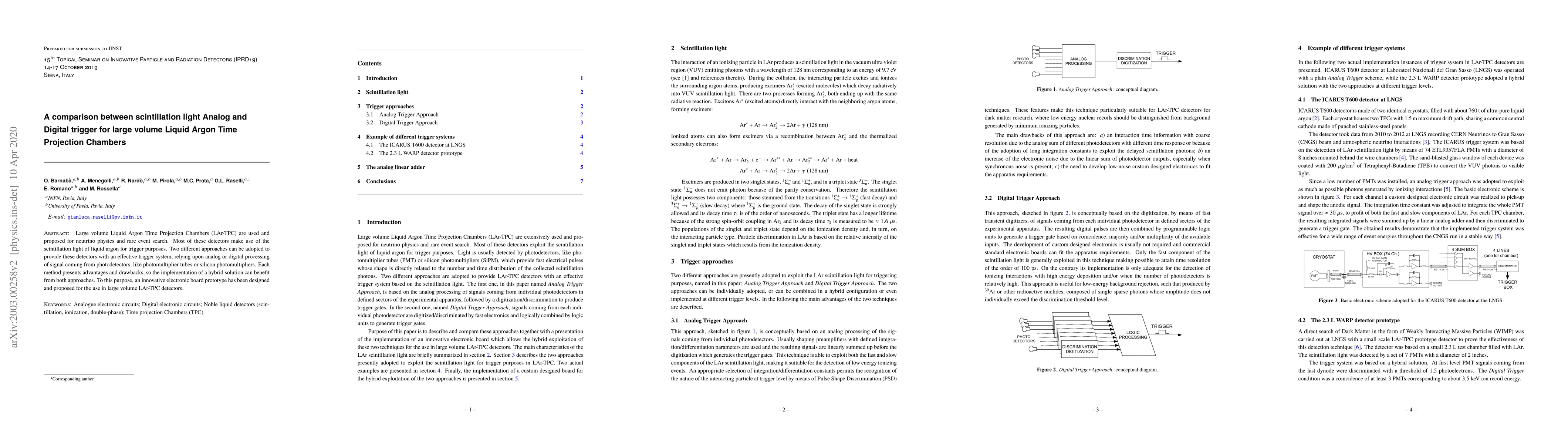 A comparison between scintillation light Analog and Digital trigger for large volume Liquid Argon Time Projection Chambers was performed.