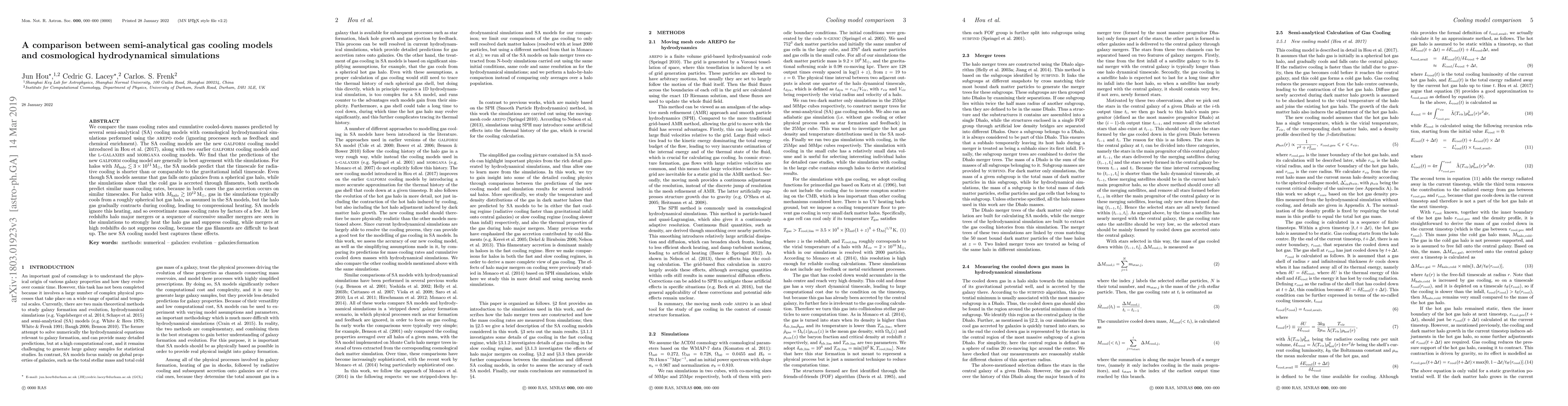 This paper compares semi-analytical gas cooling models with cosmological hydrodynamical simulations, finding that the new GALFORM model best matches simulation results. For low-mass halos, both methods predict similar cooling rates despite different gas accretion mechanisms.