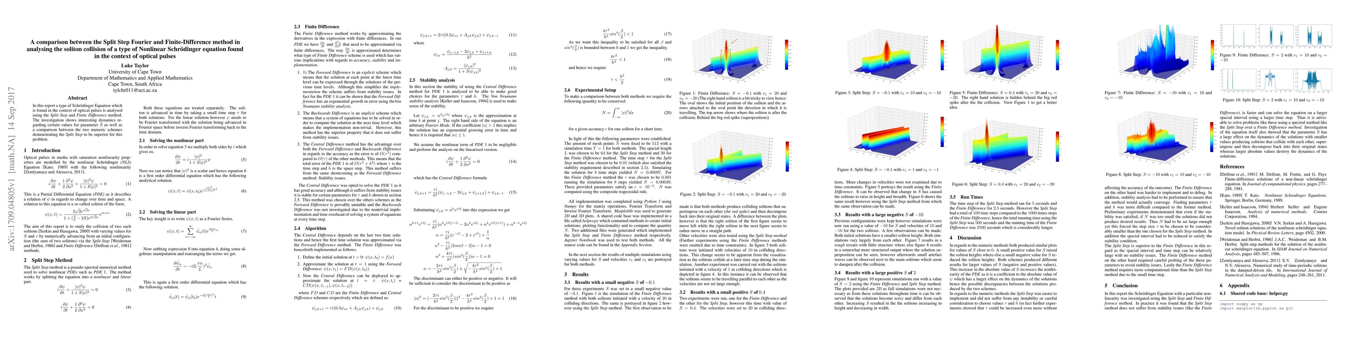 In this report a type of Schr\"odinger Equation which is found in the context of optical pulses is analysed using the $\textit{Split Step}$ and $\textit{Finite Difference}$ method. The investigation shows interesting dynamics regarding certain values for parameter $S$ as well as a comparison between the two numeric schemes demonstrating the $\textit{Split Step}$ to be superior for this problem.