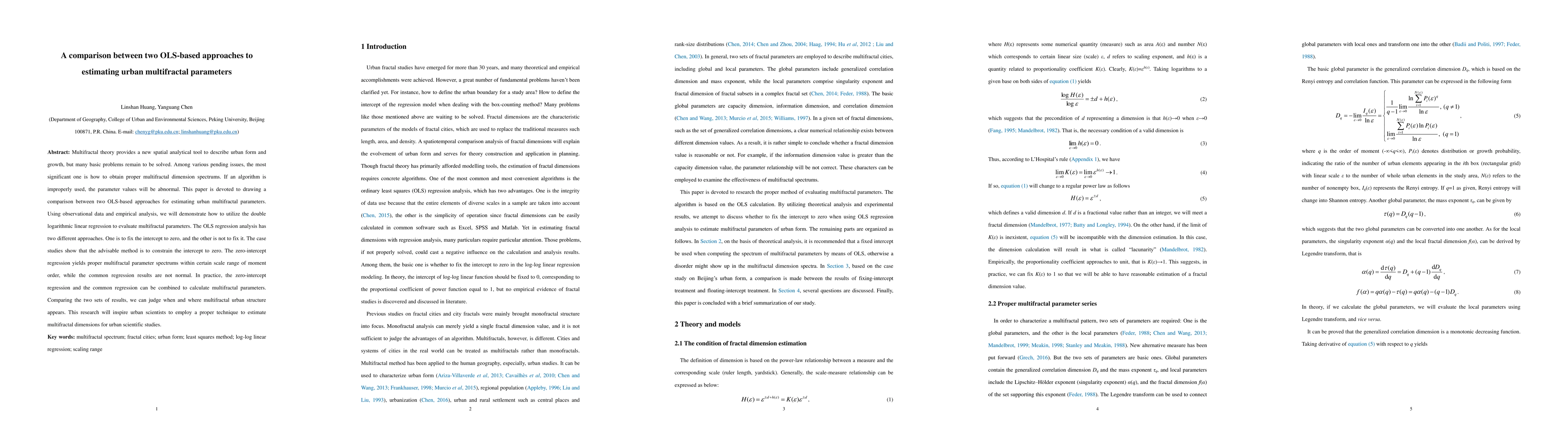 This paper compares two OLS-based approaches to estimating urban multifractal parameters using observational data, finding that fixing the intercept to zero yields more accurate results.