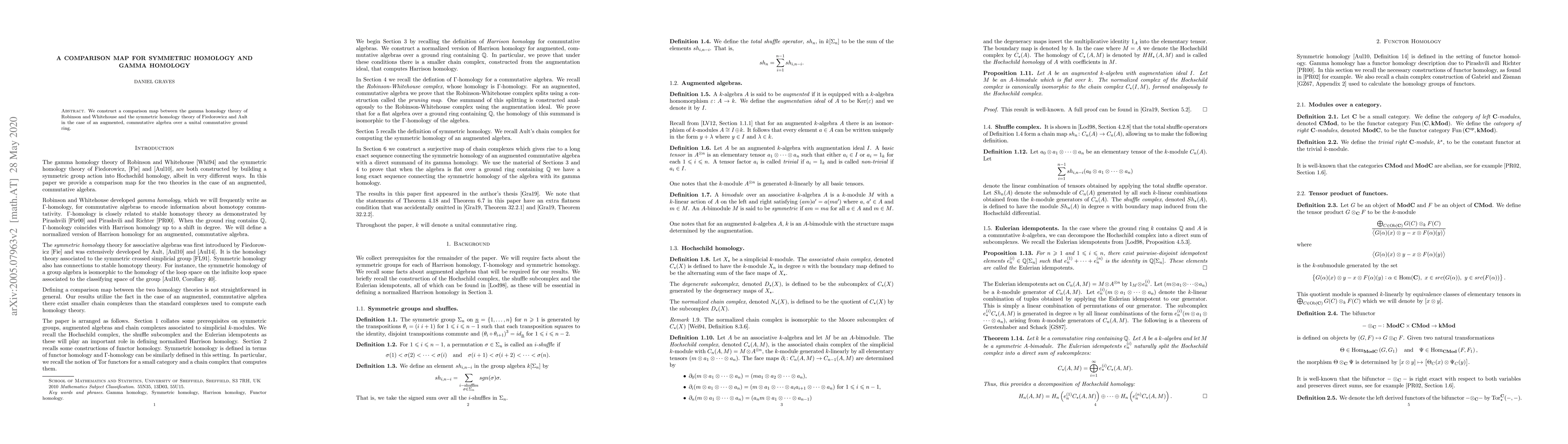 We construct a comparison map between the gamma homology theory of Robinson and Whitehouse and the symmetric homology theory of Fiedorowicz and Ault in the case of an augmented, commutative algebra over a unital commutative ground ring.