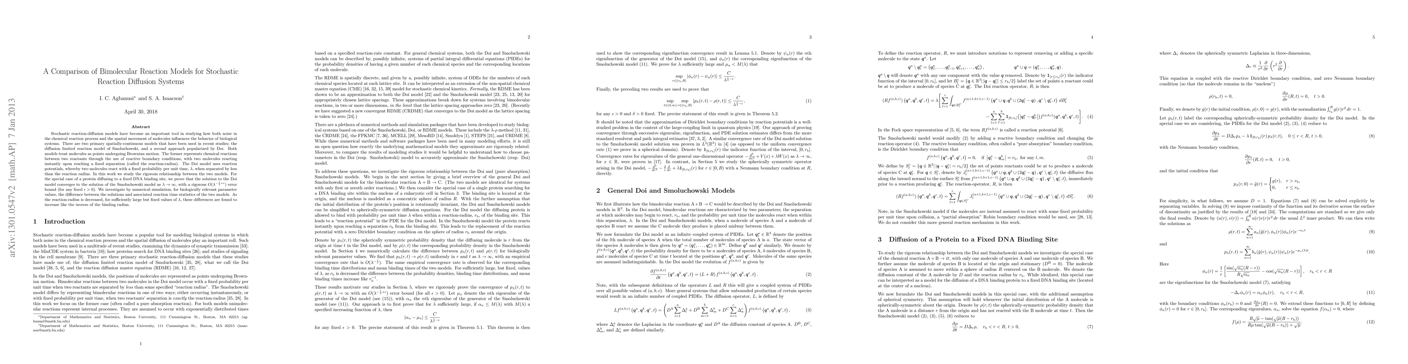 Researchers compared two models for simulating molecular reactions in biological systems, finding that as one model's parameter increases, the solution to the other converges with a specific error bound, highlighting the relationship between the models.