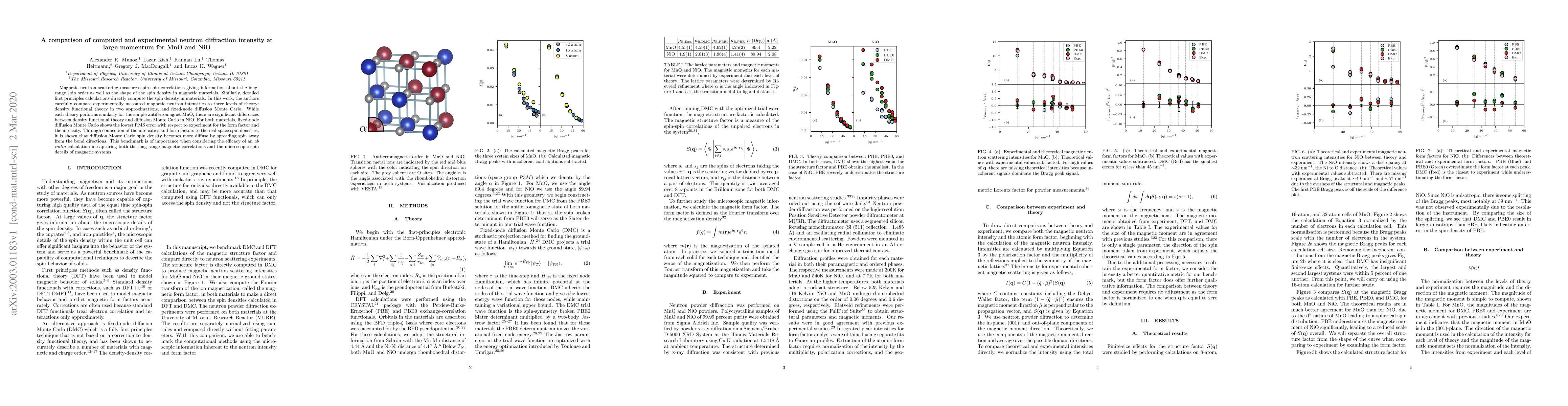 Researchers compare experimental neutron diffraction data to three theoretical methods for MnO and NiO, finding that fixed-node diffusion Monte Carlo provides the best match in both materials, shedding light on its ability to capture long-range magnetic correlations and microscopic spin details.