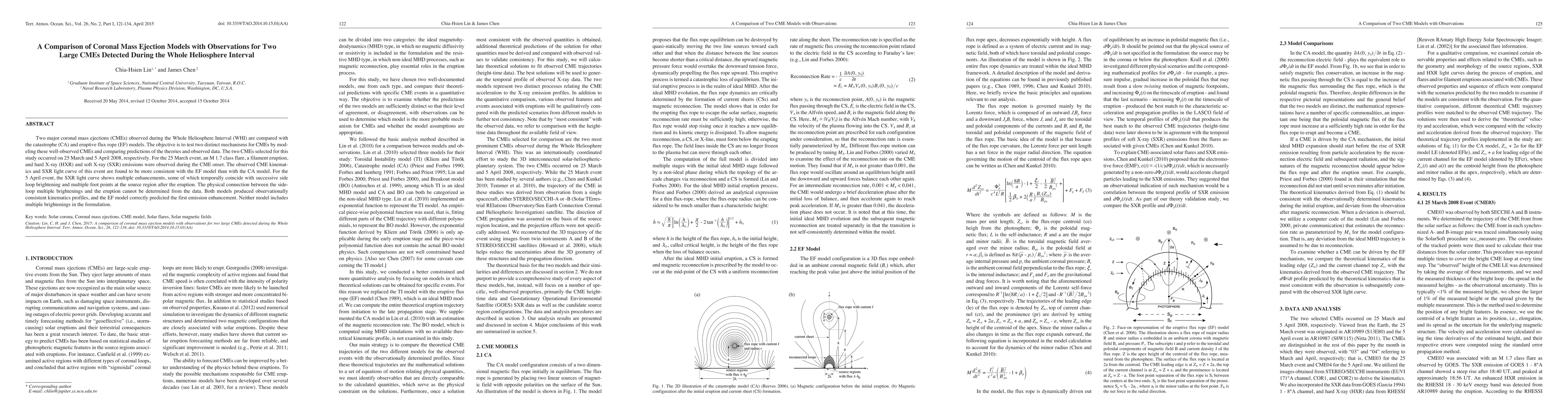 This study compares two CME models, catastrophe (CA) and eruptive flux rope (EF), using observations from March 25 and April 5, 2008 events. The EF model better explains the March 25 event's kinematics and SXR light curve, while both models match the April 5 event's kinematics. Neither model accounts for the April event's multiple brightenings.