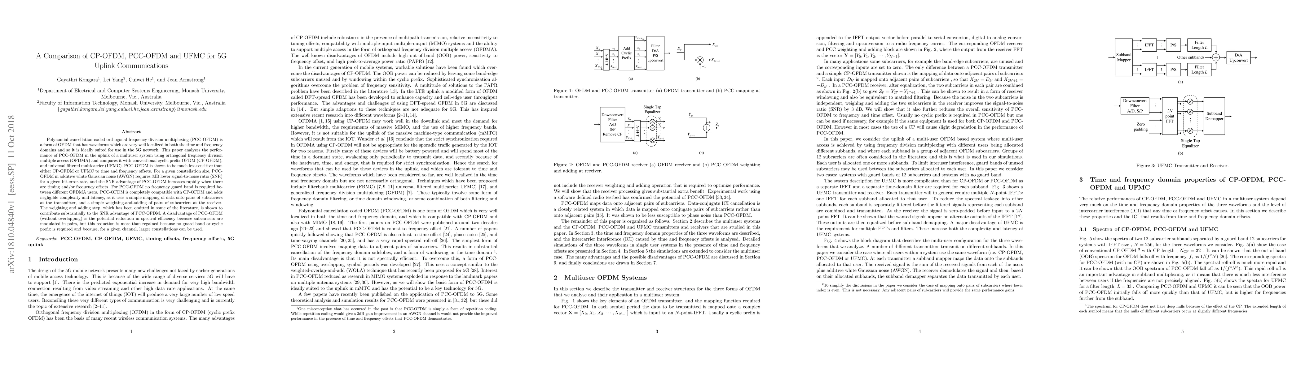 This paper compares PCC-OFDM, CP-OFDM, and UFMC for 5G uplink communications, finding PCC-OFDM significantly less sensitive to time and frequency offsets, requiring lower SNR for the same bit-error-rate, and compatible with CP-OFDM with negligible complexity and latency. Despite potential spectral efficiency reduction due to paired subcarrier modulation, PCC-OFDM's performance benefits outweigh this.