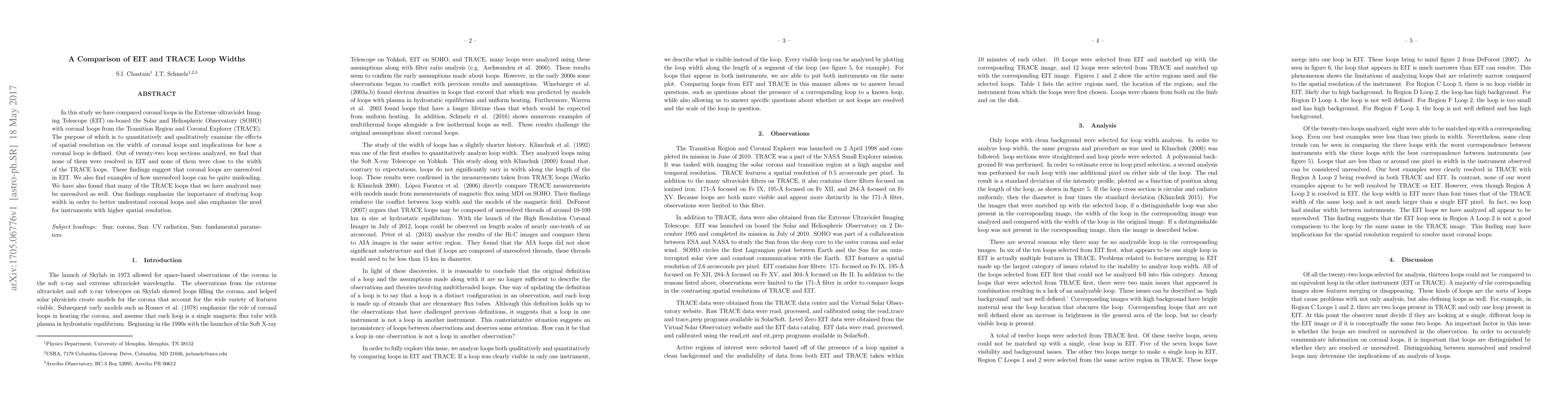 This study compares coronal loop widths from EIT and TRACE to assess the impact of spatial resolution on loop definition. Results show that EIT fails to resolve any loops, while TRACE loops appear wider, highlighting the need for higher resolution instruments to accurately study coronal loops.