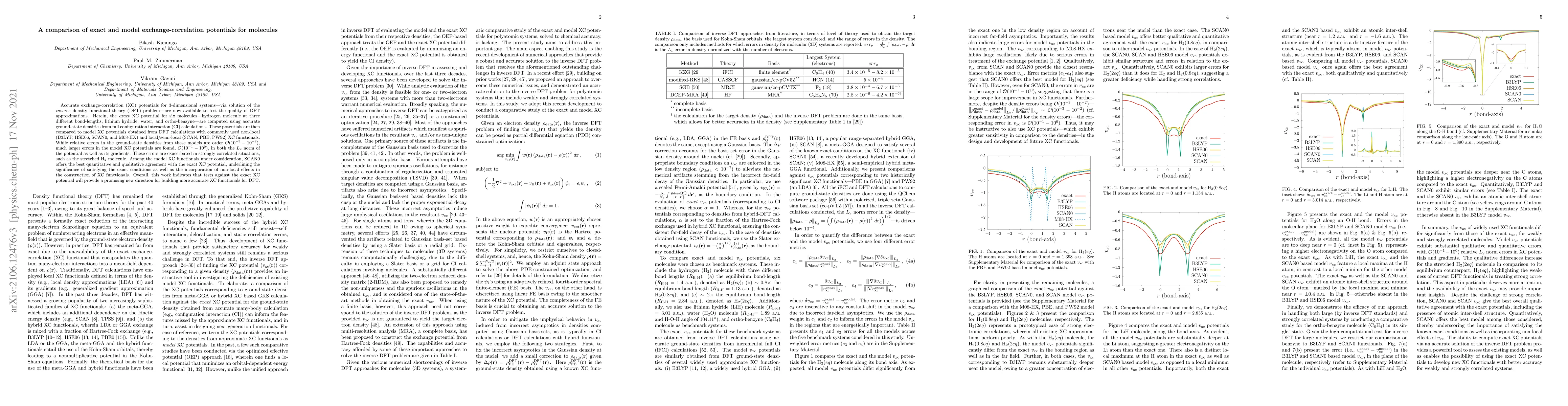 This paper compares exact exchange-correlation potentials derived from full configuration interaction calculations with model XC potentials from DFT using various functionals. It finds significant discrepancies in the model potentials, especially in strongly correlated systems, with SCAN0 showing the best agreement.