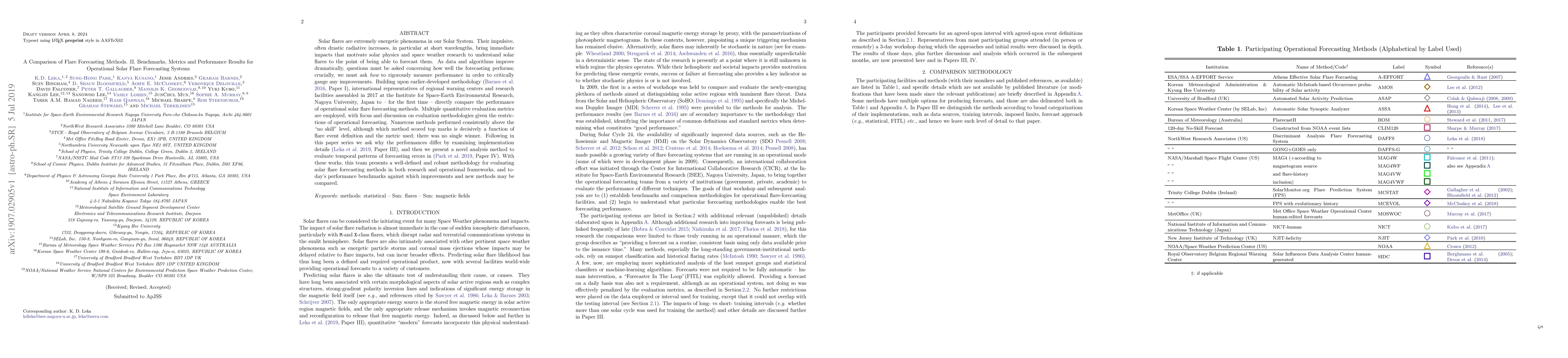 This paper compares the performance of various operational solar flare forecasting systems using rigorous benchmarks and metrics. Despite improvements in data and algorithms, no single method emerged as the best, highlighting the importance of flare event definitions and evaluation metrics in determining forecasting success.