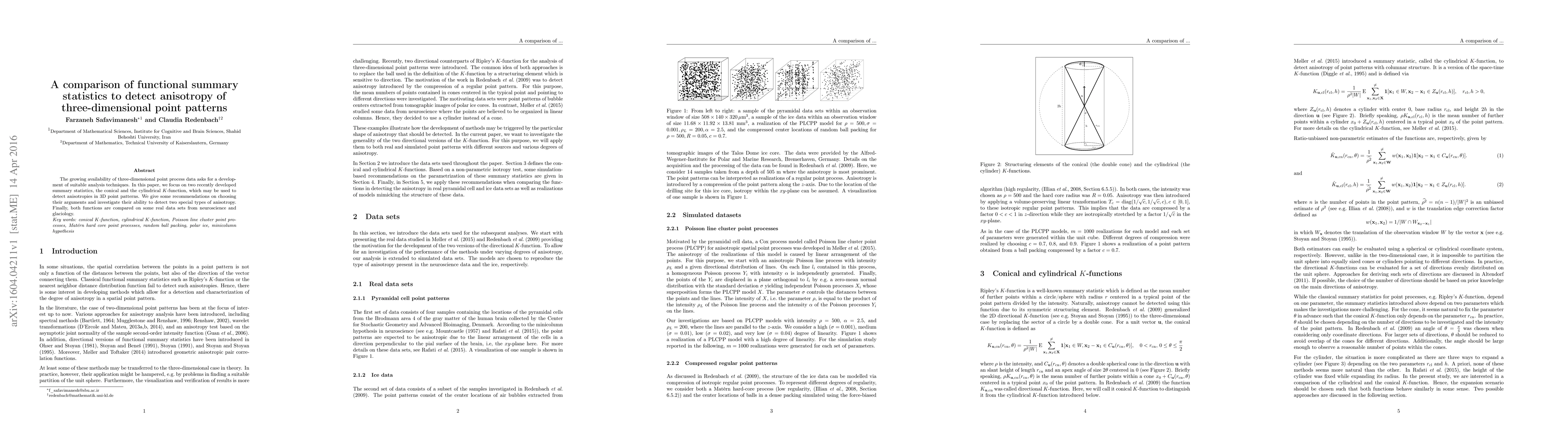 This paper evaluates two recently developed summary statistics—the conical and cylindrical $K$-functions—for detecting anisotropy in three-dimensional point patterns, comparing their effectiveness and providing recommendations for their use on real data from neuroscience and glaciology.