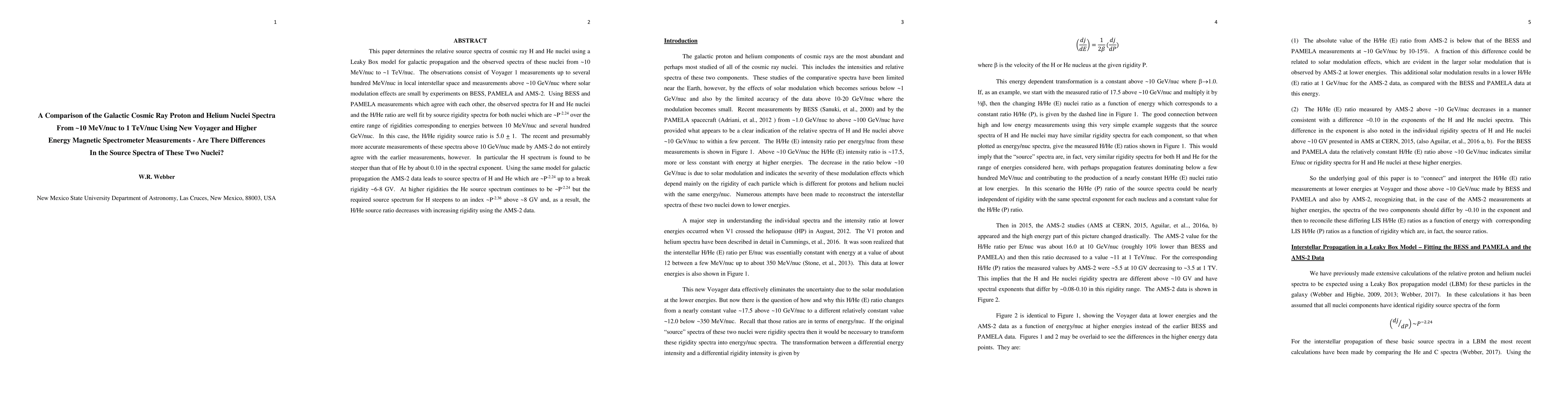 This paper compares the cosmic ray proton and helium spectra from ~10 MeV/nuc to 1 TeV/nuc, finding that both follow a ~P-2.24 source spectrum, but AMS-2 data suggests a steeper H spectrum above ~8 GV, leading to a decreasing H/He ratio with higher rigidity.