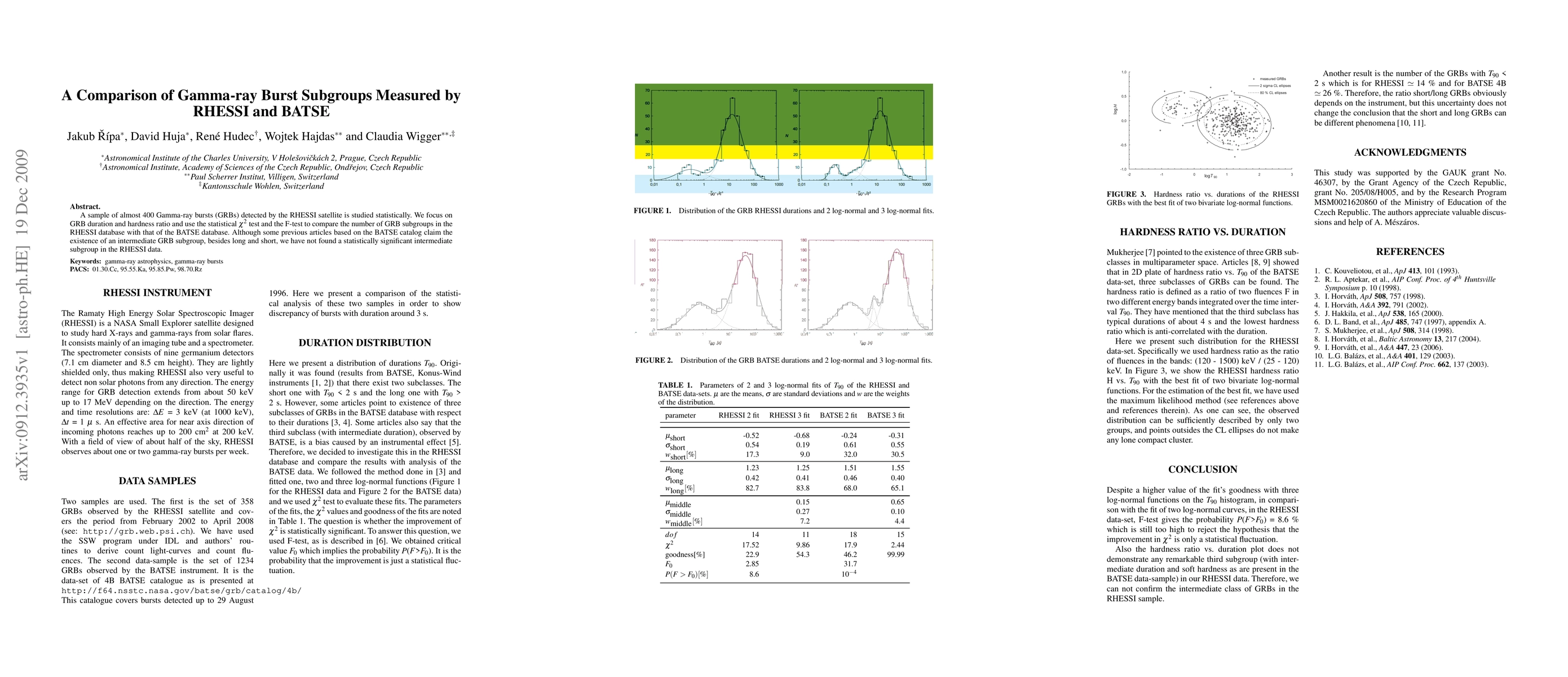 This study statistically compares Gamma-ray burst subgroups from RHESSI and BATSE data, focusing on duration and hardness ratio. The analysis does not support the existence of an intermediate subgroup in RHESSI data, contrary to some BATSE-based claims.