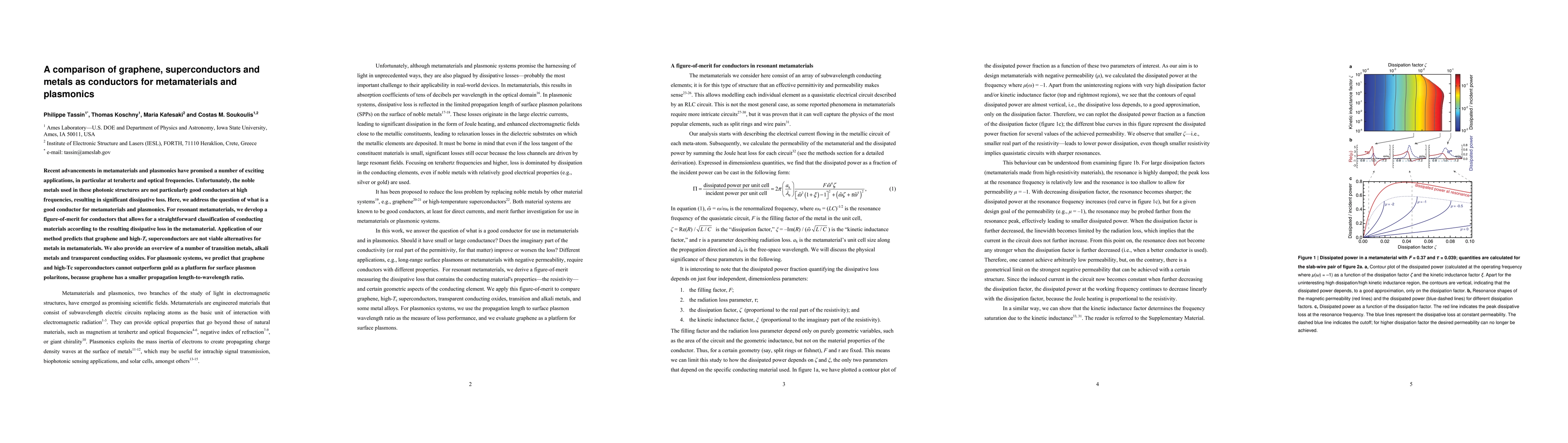 Recent advancements in metamaterials and plasmonics have promised a number of exciting applications, in particular at terahertz and optical frequencies. Unfortunately, the noble metals used in these photonic structures are not particularly good conductors at high frequencies, resulting in significant dissipative loss. Here, we address the question of what is a good conductor for metamaterials and plasmonics. For resonant metamaterials, we develop a figure-of-merit for conductors that allows for a straightforward classification of conducting materials according to the resulting dissipative loss in the metamaterial. Application of our method predicts that graphene and high-Tc superconductors are not viable alternatives for metals in metamaterials. We also provide an overview of a number of transition metals, alkali metals and transparent conducting oxides. For plasmonic systems, we predict that graphene and high-Tc superconductors cannot outperform gold as a platform for surface plasmon polaritons, because graphene has a smaller propagation length-to-wavelength ratio.