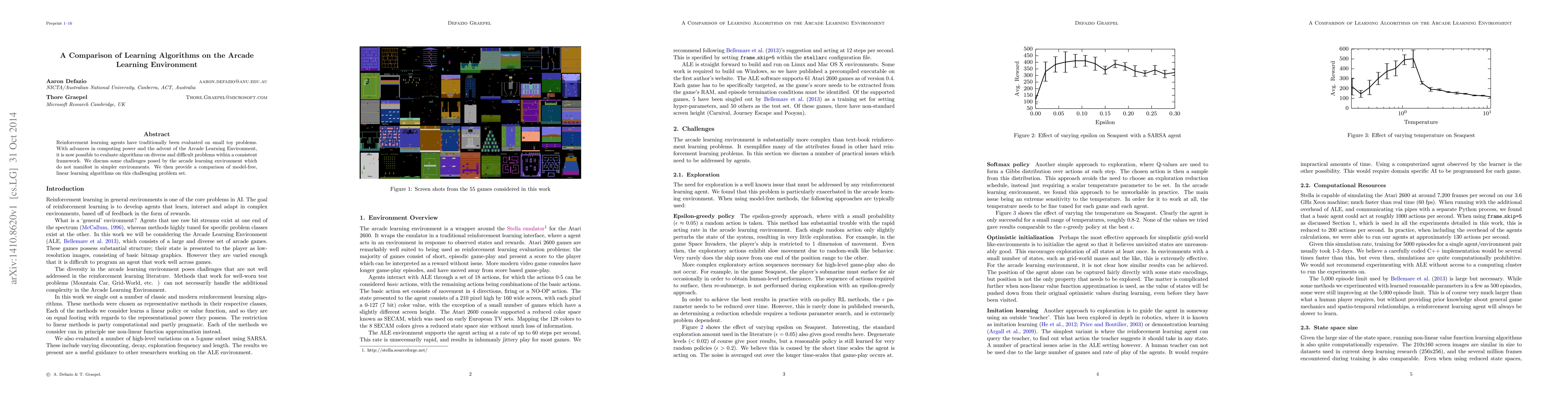 Reinforcement learning agents have traditionally been evaluated on small toy problems. With advances in computing power and the advent of the Arcade Learning Environment, it is now possible to evaluate algorithms on diverse and difficult problems within a consistent framework. We discuss some challenges posed by the arcade learning environment which do not manifest in simpler environments. We then provide a comparison of model-free, linear learning algorithms on this challenging problem set.