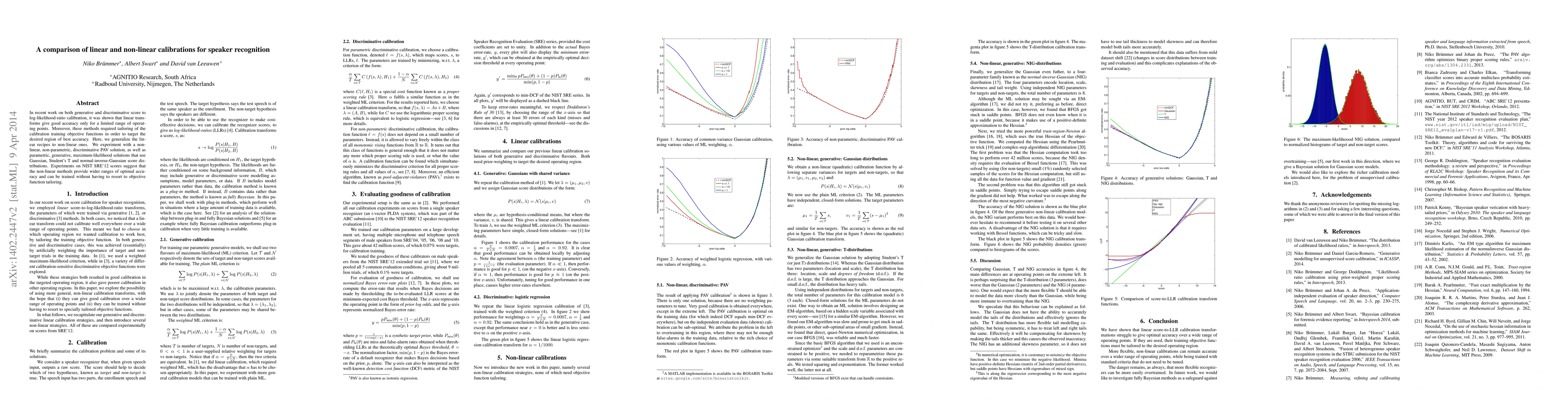 Researchers found that non-linear calibration methods can provide wider ranges of optimal accuracy for speaker recognition without needing to tailor training objectives. This is a breakthrough in score-to-log-likelihood ratio calibration.