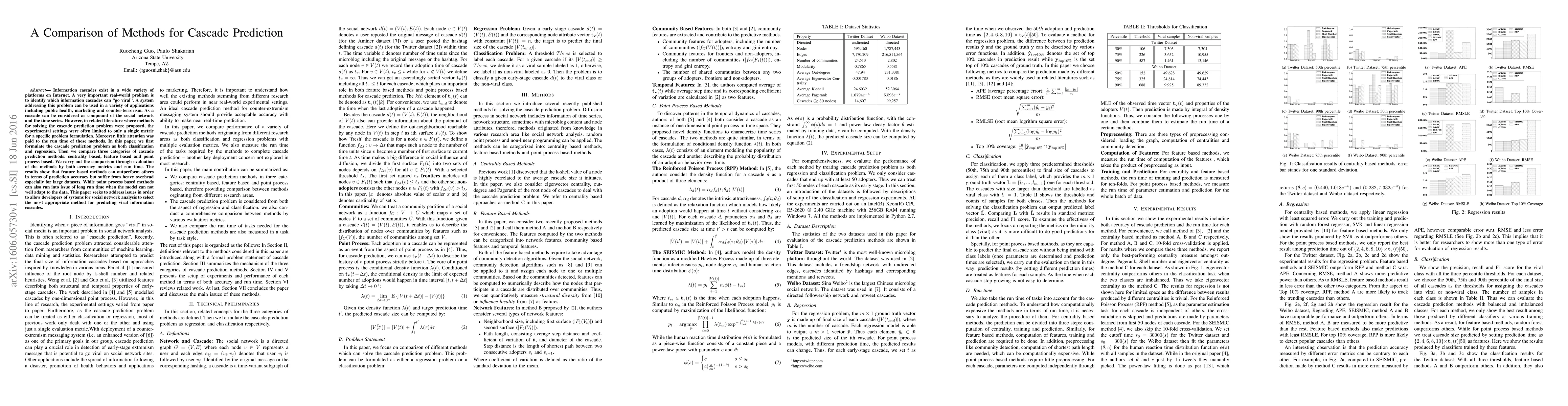 This paper compares three categories of methods for predicting viral information cascades: centrality based, feature based, and point process based. Feature based methods show the highest prediction accuracy but have significant run time overhead, while point process based methods also suffer from long run times when poorly adapted to data.