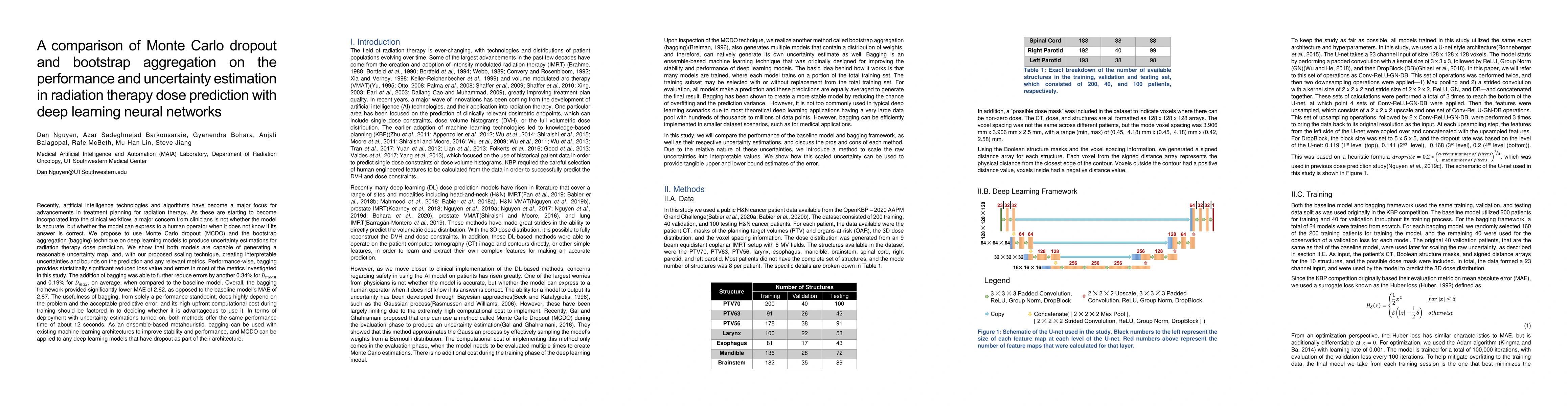 Recently, artificial intelligence technologies and algorithms have become a major focus for advancements in treatment planning for radiation therapy. As these are starting to become incorporated into the clinical workflow, a major concern from clinicians is not whether the model is accurate, but whether the model can express to a human operator when it does not know if its answer is correct. We propose to use Monte Carlo dropout (MCDO) and the bootstrap aggregation (bagging) technique on deep learning models to produce uncertainty estimations for radiation therapy dose prediction. We show that both models are capable of generating a reasonable uncertainty map, and, with our proposed scaling technique, creating interpretable uncertainties and bounds on the prediction and any relevant metrics. Performance-wise, bagging provides statistically significant reduced loss value and errors in most of the metrics investigated in this study. The addition of bagging was able to further reduce errors by another 0.34% for Dmean and 0.19% for Dmax, on average, when compared to the baseline framework. Overall, the bagging framework provided significantly lower MAE of 2.62, as opposed to the baseline framework's MAE of 2.87. The usefulness of bagging, from solely a performance standpoint, does highly depend on the problem and the acceptable predictive error, and its high upfront computational cost during training should be factored in to deciding whether it is advantageous to use it. In terms of deployment with uncertainty estimations turned on, both frameworks offer the same performance time of about 12 seconds. As an ensemble-based metaheuristic, bagging can be used with existing machine learning architectures to improve stability and performance, and MCDO can be applied to any deep learning models that have dropout as part of their architecture.