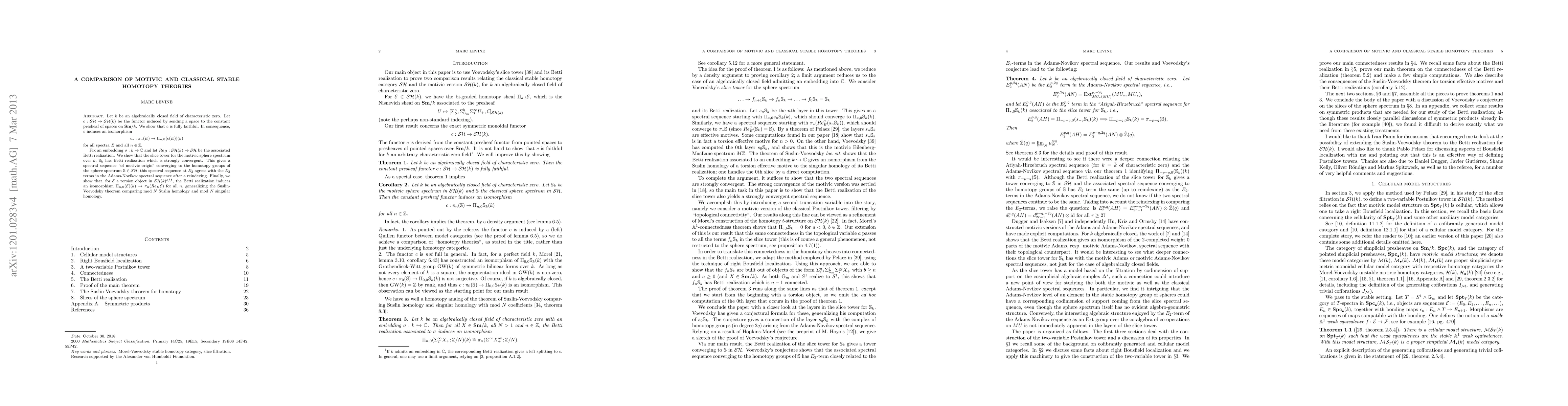 Let k be an algebraically closed field of characteristic zero. Let SH(k) denote the motivic stable homotopy category of T-spectra over k and SH the classical stable homotopy category. Let c:SH -> SH(k) be the functor induced by sending a space to the constant presheaf of spaces on Sm/k. We show that c is fully faithful. In particular, c induces an isomorphism {\pi}_n(E)-> {\pi}_{n,0}c(E) for all spectra E. Fix an embedding of k into the complex numbers and let Re:SH(k) -> SH be the associated Betti realization. We show that the slice tower for the motivic sphere spectrum has Betti realization which is strongly convergent. This gives a spectral sequence "of motivic origin" converging to the homotopy groups of the classical sphere spectrum; this spectral sequence at E_2 agrees with the E_2 terms in the Adams-Novikov spectral sequence.