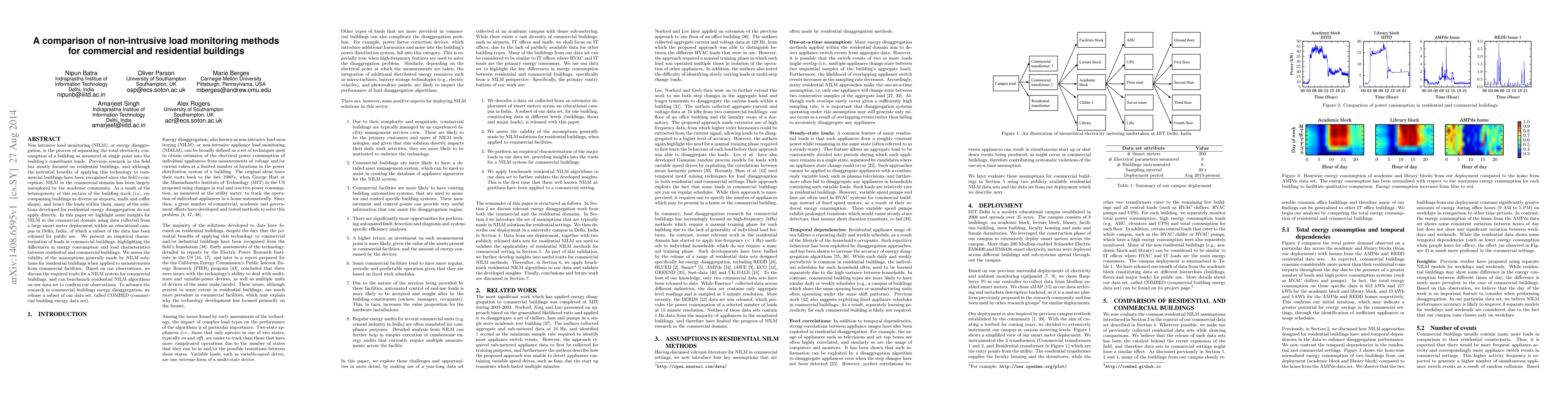 This paper compares non-intrusive load monitoring (NILM) methods for residential versus commercial buildings, highlighting differences in energy consumption and load characteristics. It releases a new dataset, COMBED, to advance research in commercial NILM.