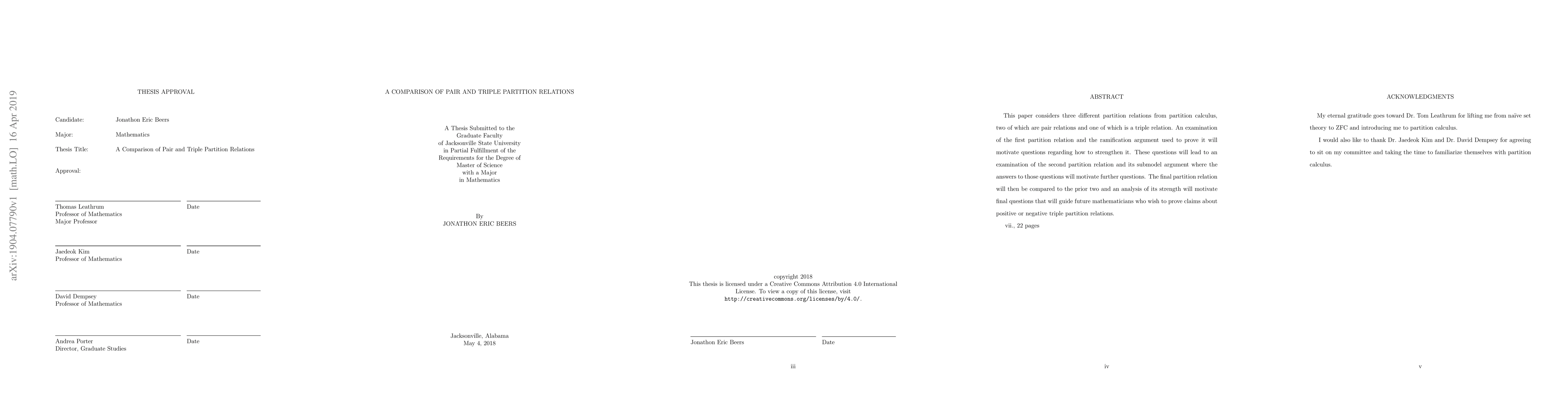 This paper compares three partition relations from partition calculus, analyzing the strength and implications of each, with a focus on how questions arising from the pair relations lead to deeper inquiries into the triple relation, ultimately guiding future research in this area.