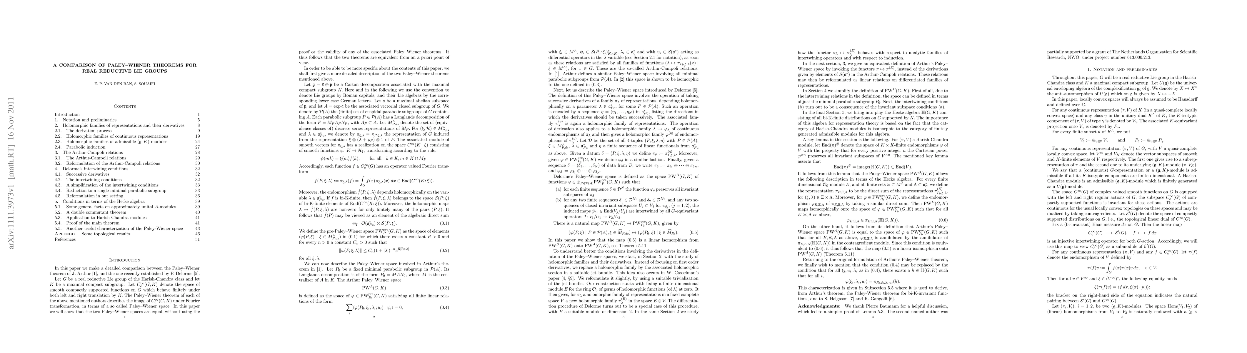 This paper compares Paley-Wiener theorems by J. Arthur and P. Delorme for real reductive Lie groups, proving their equivalence and providing an alternative formulation via the Hecke algebra of bi-K-finite distributions, utilizing techniques involving holomorphic families and Harish-Chandra modules.