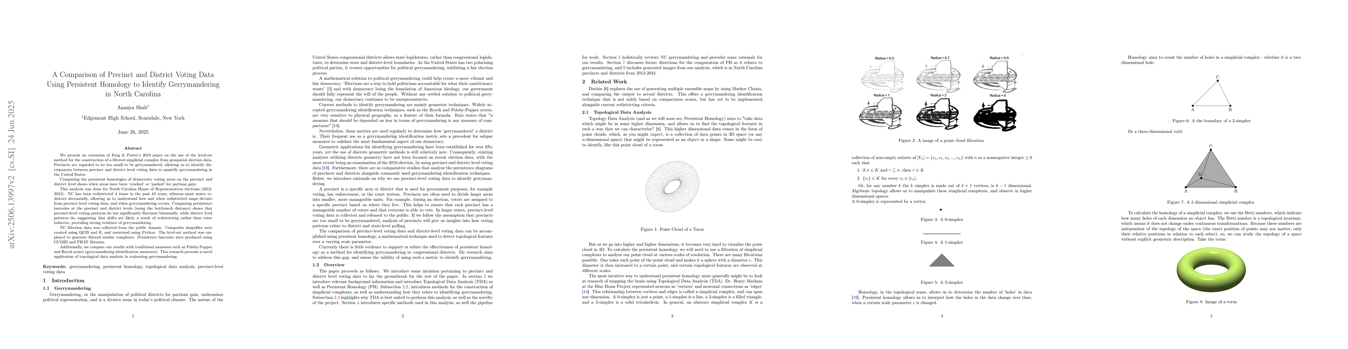 We present an extension of Feng and Porter's 2019 paper on the use of the level-set method for the construction of a filtered simplicial complex from geospatial election data. Precincts are regarded to be too small to be gerrymandered, allowing us to identify discrepancies between precinct and district level voting data to quantify gerrymandering in the United States. Comparing the persistent homologies of Democratic voting areas on the precinct and district level shows when areas have been 'cracked' or 'packed' for partisan gain. This analysis was done for North Carolina House of Representatives elections (2012 to 2024). North Carolina has been redistricted 4 times in the past 10 years, whereas most states redistrict decennially, allowing us to understand how and when redistricted maps deviate from precinct-level voting data, and when gerrymandering occurs. Comparing persistence barcodes at the precinct and district levels (using the bottleneck distance) shows that precinct-level voting patterns do not significantly fluctuate biannually, while district level patterns do, suggesting that shifts are likely a result of redistricting rather than voter behavior, providing strong evidence of gerrymandering. North Carolina election data was collected from the public domain. Composite shapefiles were created using QGIS and R, and rasterized using Python. The level-set method was employed to generate filtered simplicial complexes. Persistence barcodes were produced using GUDHI and PHAT libraries. Additionally, we compare our results with traditional measures such as Polsby-Popper and Reock scores (gerrymandering identification measures). This research presents a novel application of topological data analysis in evaluating gerrymandering.