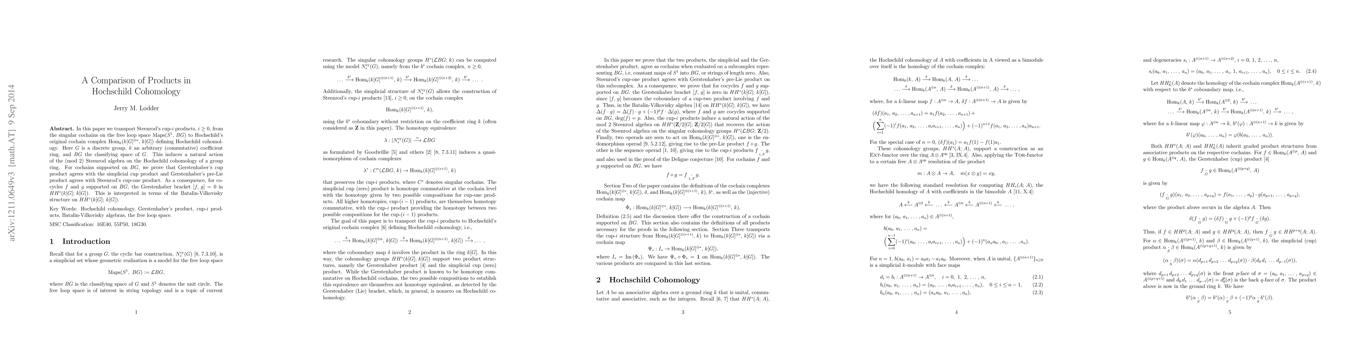 Summary: The paper demonstrates the equivalence between Gerstenhaber's cup product and simplicial cup product, and Gerstenhaber's pre-Lie product with Steenrod's cup-one product in Hochschild cohomology, showing that the Gerstenhaber bracket vanishes for cocycles supported on the classifying space BG of a discrete group G. This finding relates to the Batalin-Vilkovisky structure in the Hochschild cohomology of k[G].